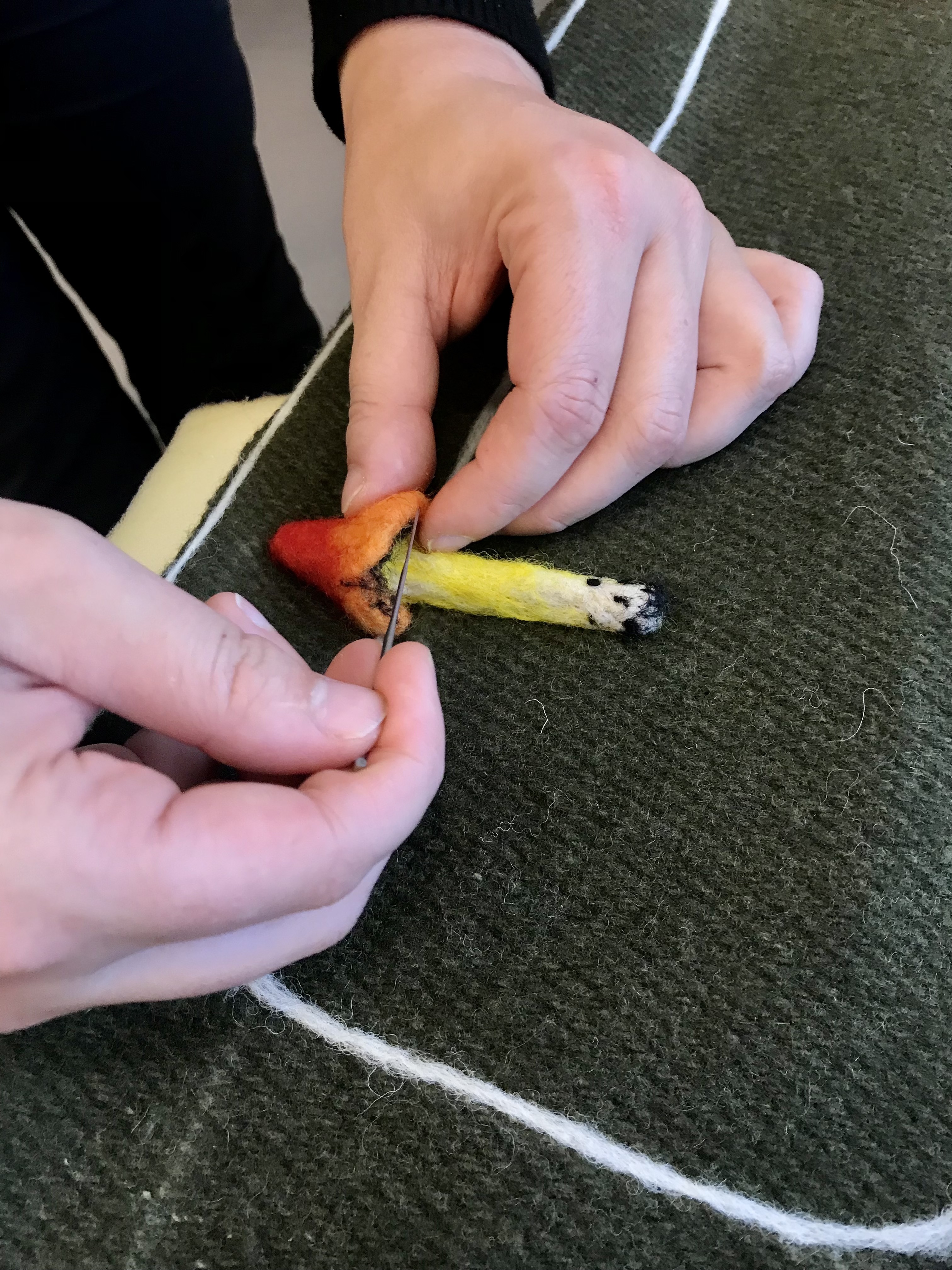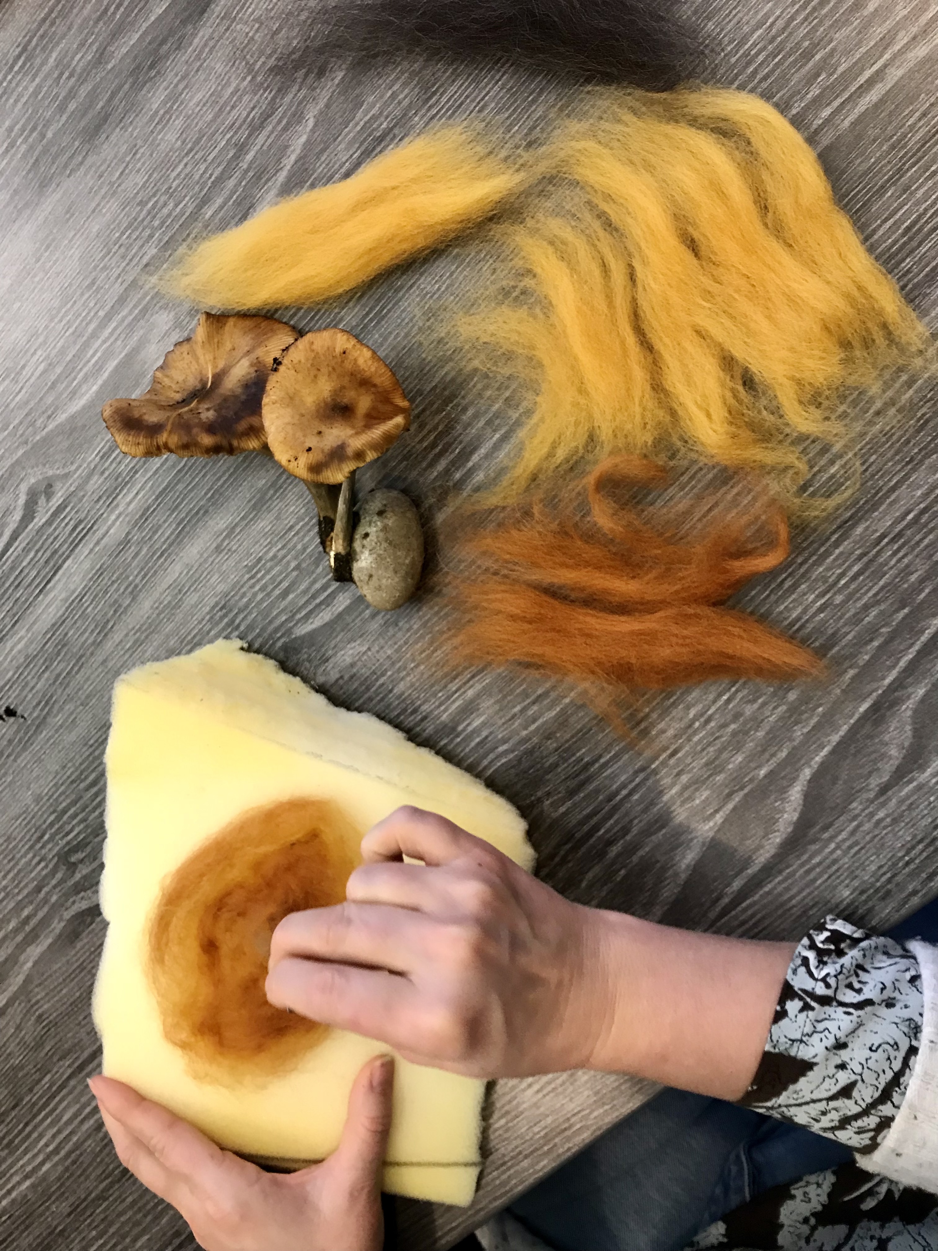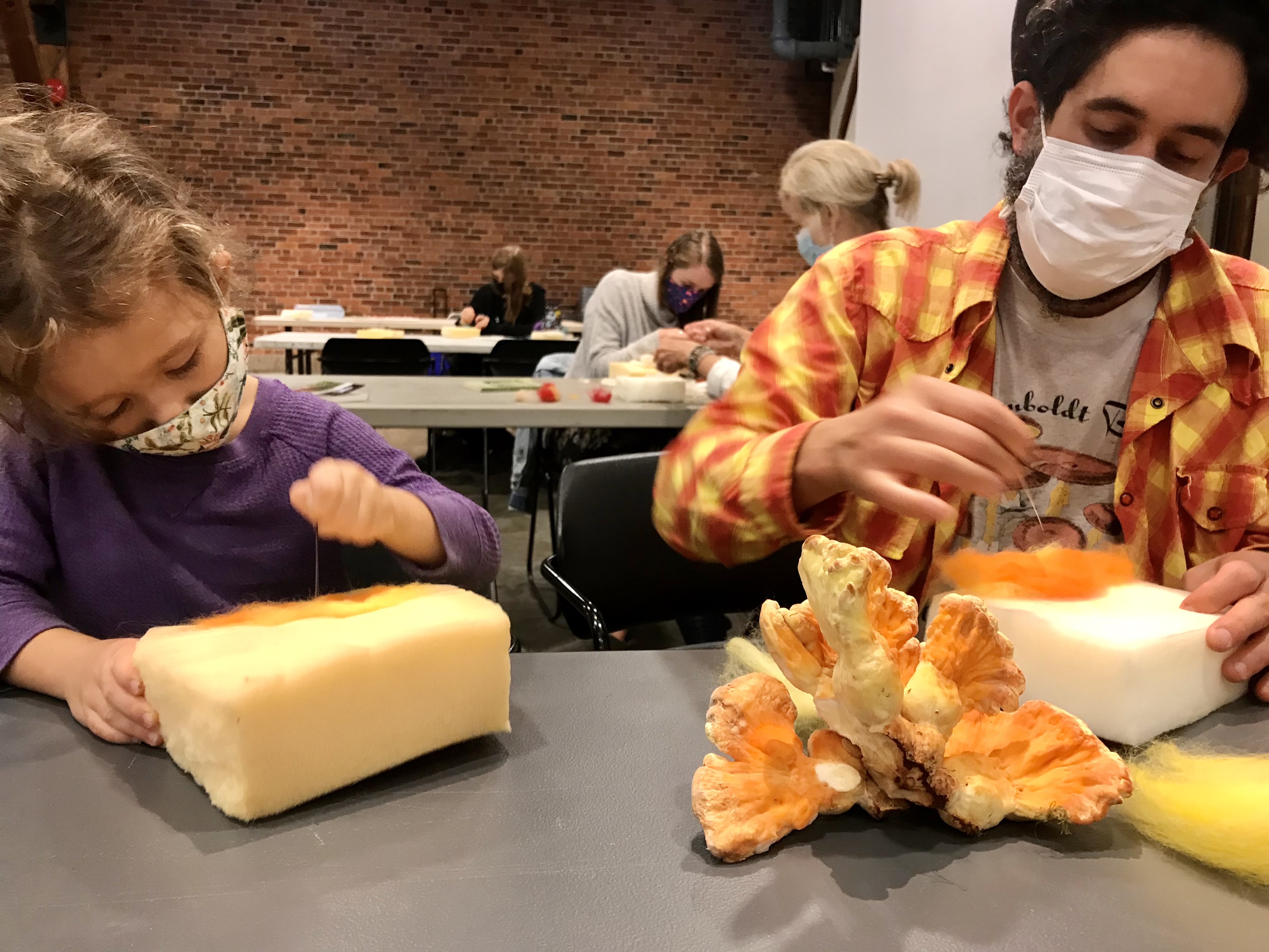 We are grateful to have been sharing this rainy day with a wonderful group of mushroom enthusiasts, needle felting wildly diverse fungi with wool over lively conversations. Crafted local species included the famous Fly Agaric (Amanita muscaria), a few Russulas (R. queletii, R. sanguinea), Boletus zelleri, the delicious Pacific Golden Chanterelle (Cantharellus formosus), Laccaria amethysta-occidentalis, and many more.