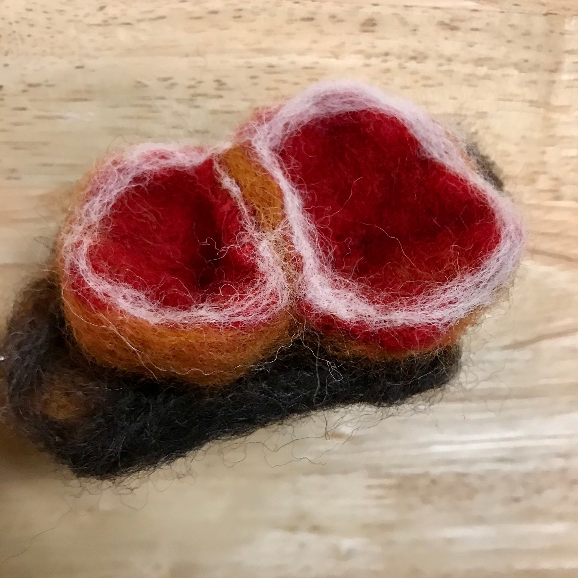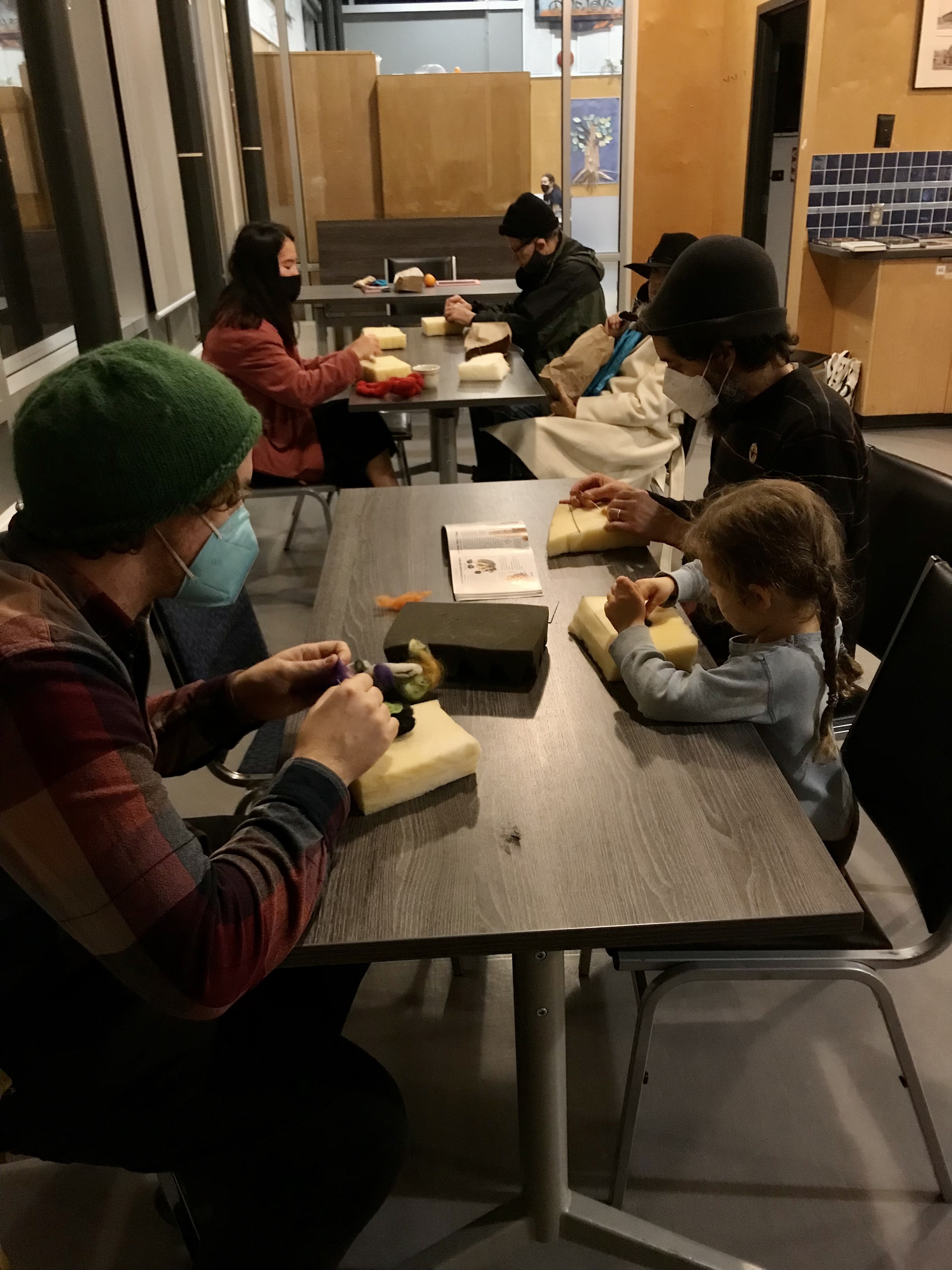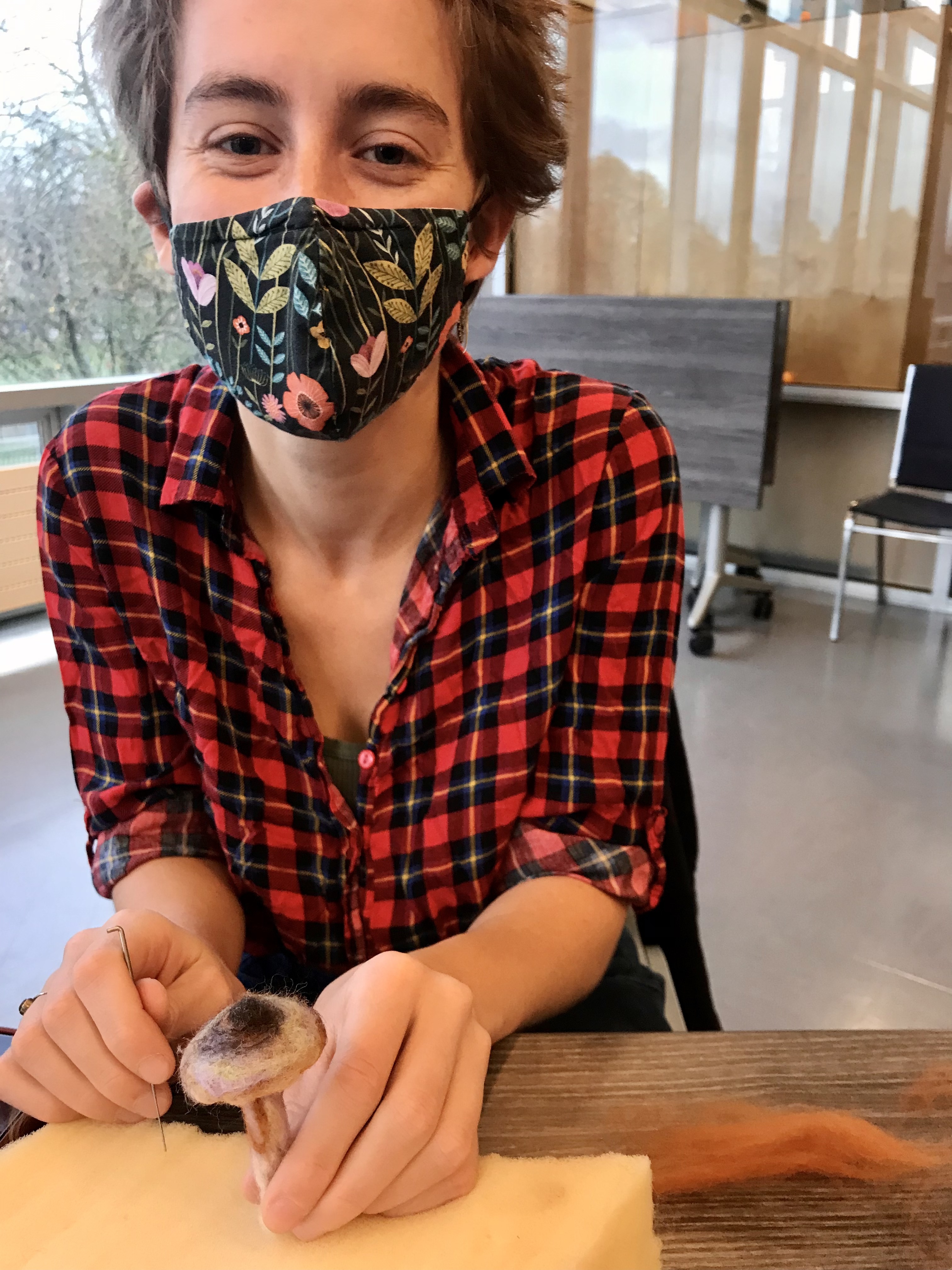 Today, we started working on our fungal map of the neighbourhood. After identifying fungi living around the community centre and consulting iNaturalist data entries that were provided by citizen scientists and mushroom enthusiasts of this neighbourhood, we chose the mushrooms we wanted to needle felt. We are looking forward to continuing this work throughout the month and creating a large felted fungal map that will be exhibited in the window of the Kitsilano Community Centre.