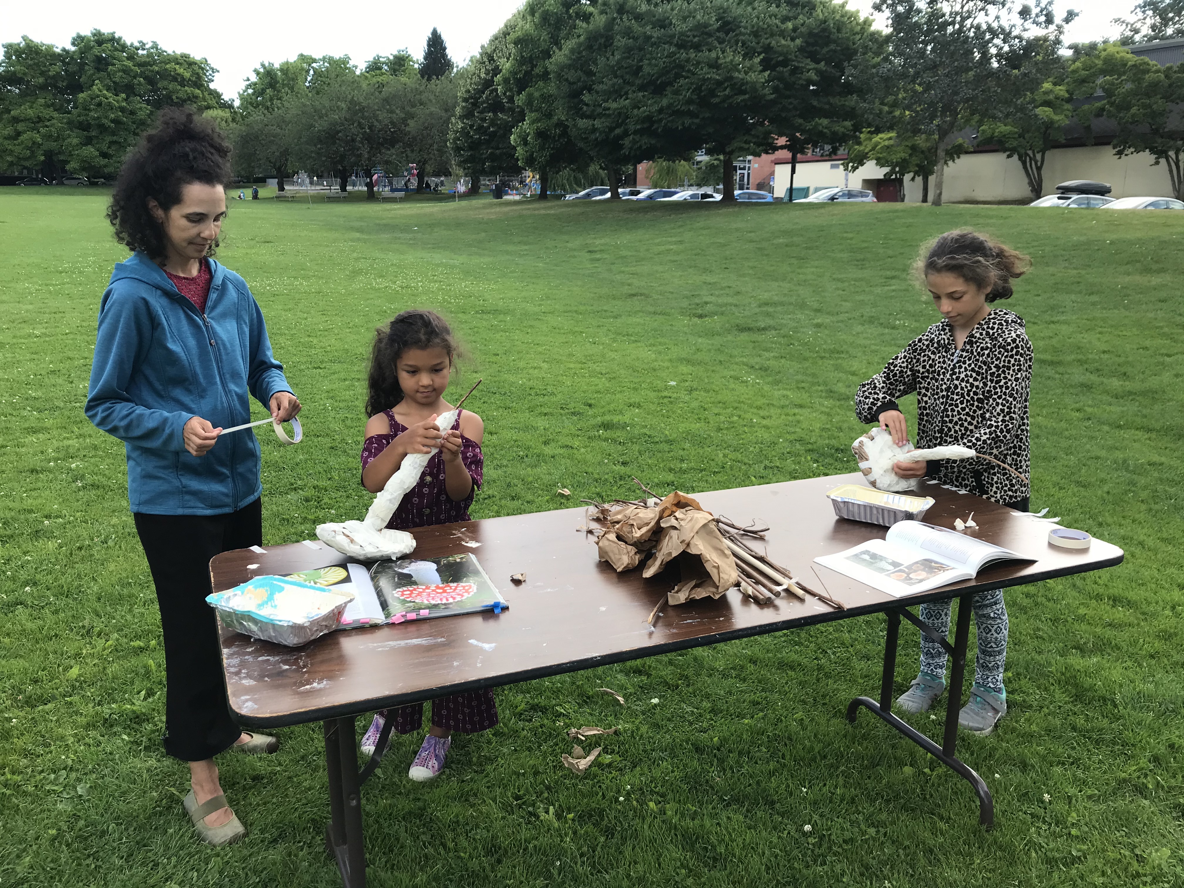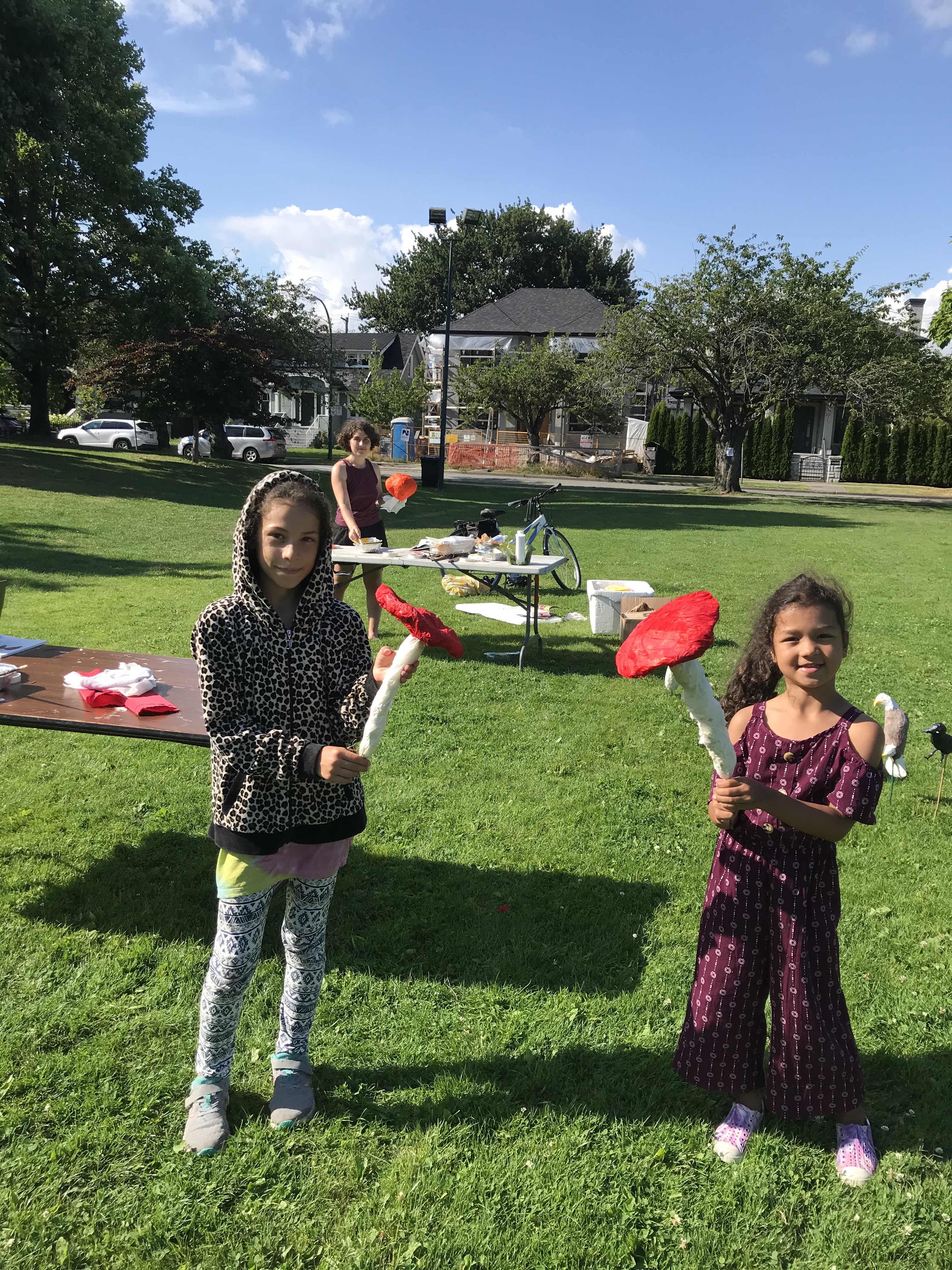 Today, we spent the afternoon crafting some mushroom paper mache puppets inspired by our local fungi. It felt wonderful to connect with some lovely community members in-person for the first time since the beginning of the pandemic. We had great conversations while making a king bolete, a birch bolete and two Amanita Muscaria.