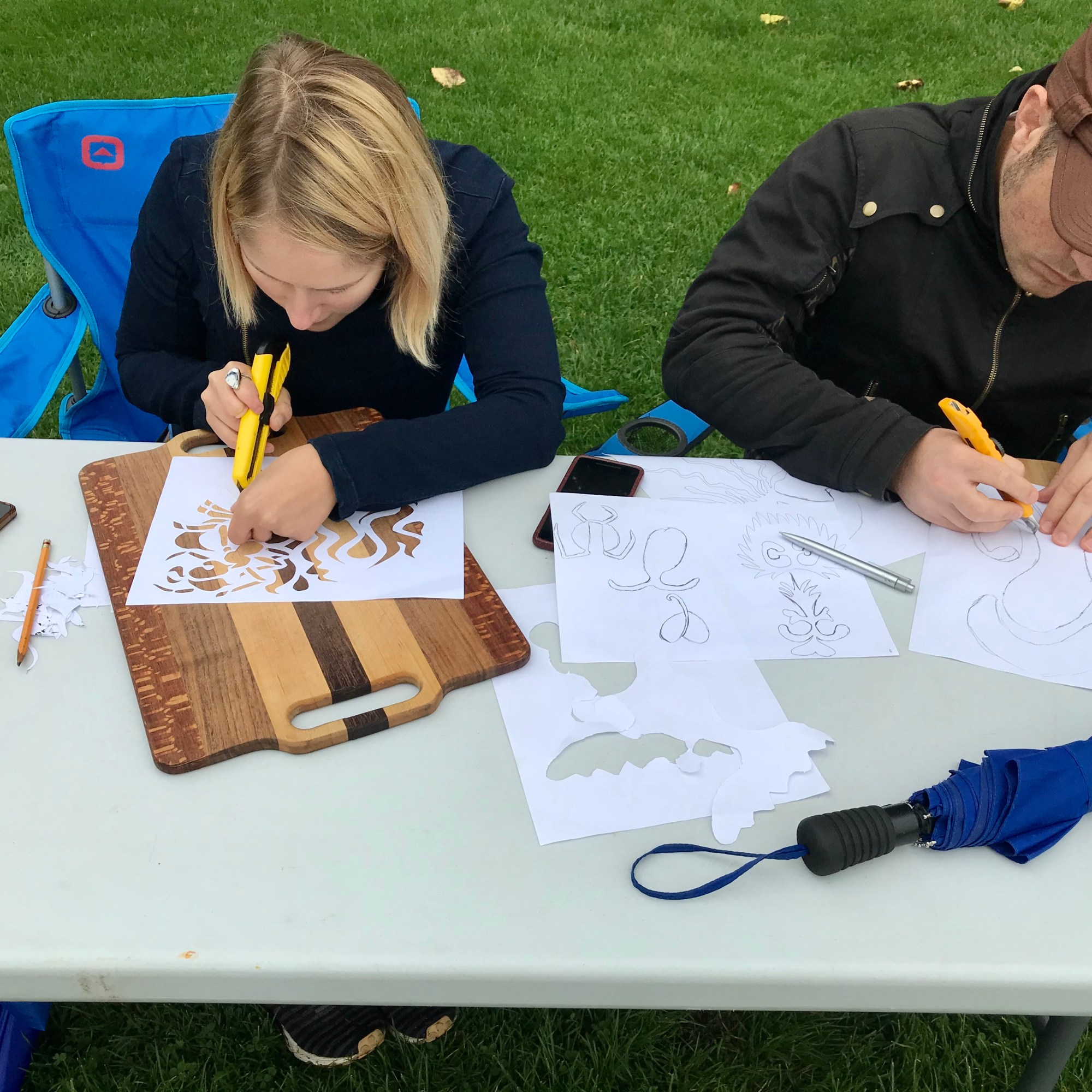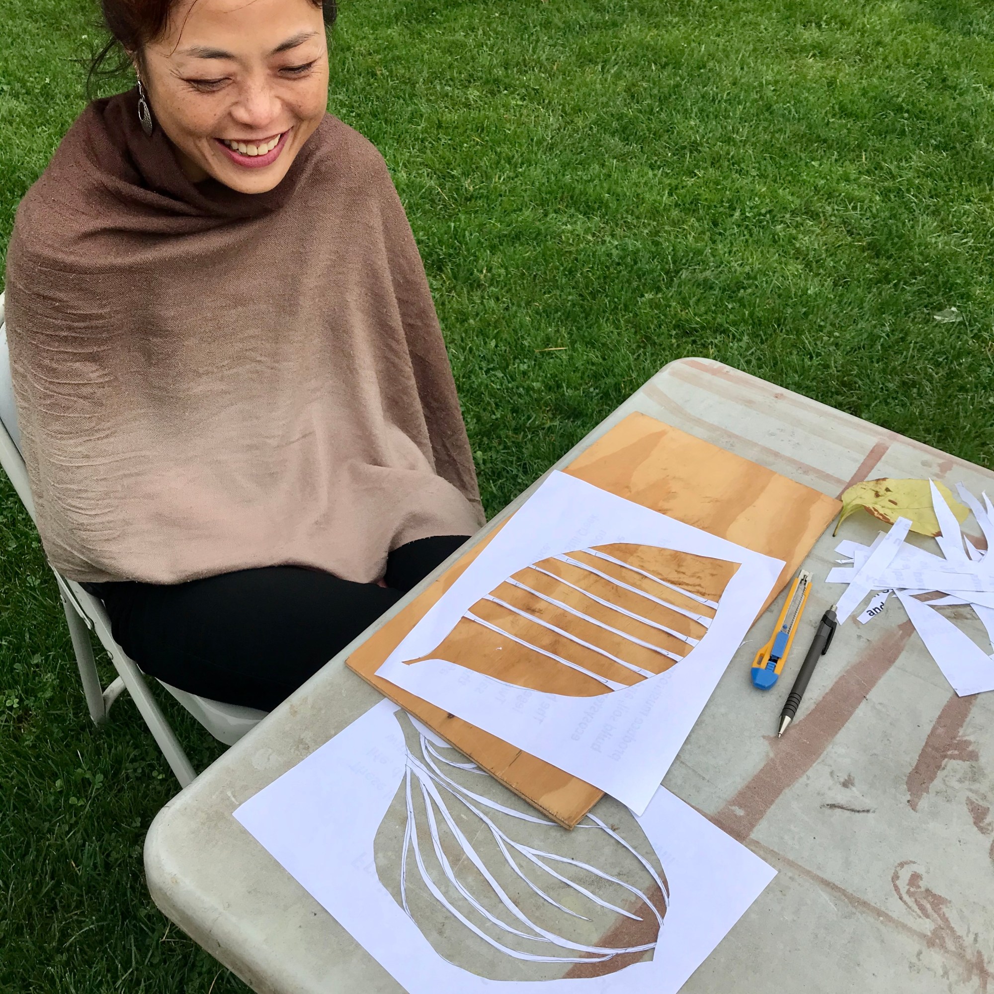 Today, we gathered in Connaught Park, behind the community centre, to create stencils that will be imprinted by spore prints and that were inspired by a guided meditation about the mushroom life cycle. We ended our session by going for a short foray around the neighbourhood to discover and discuss some of our local urban fungi, including lichens and wood decay fungi.