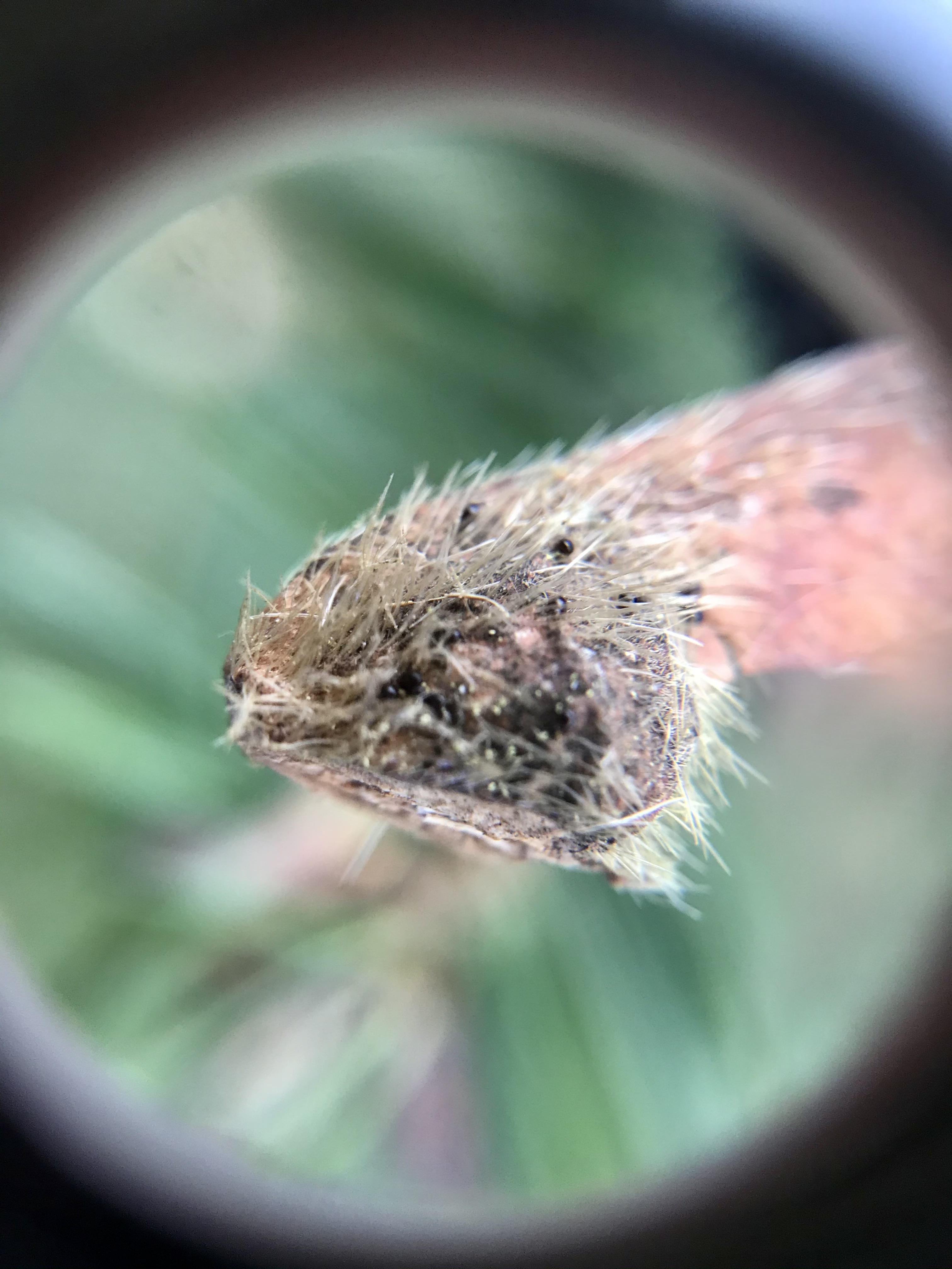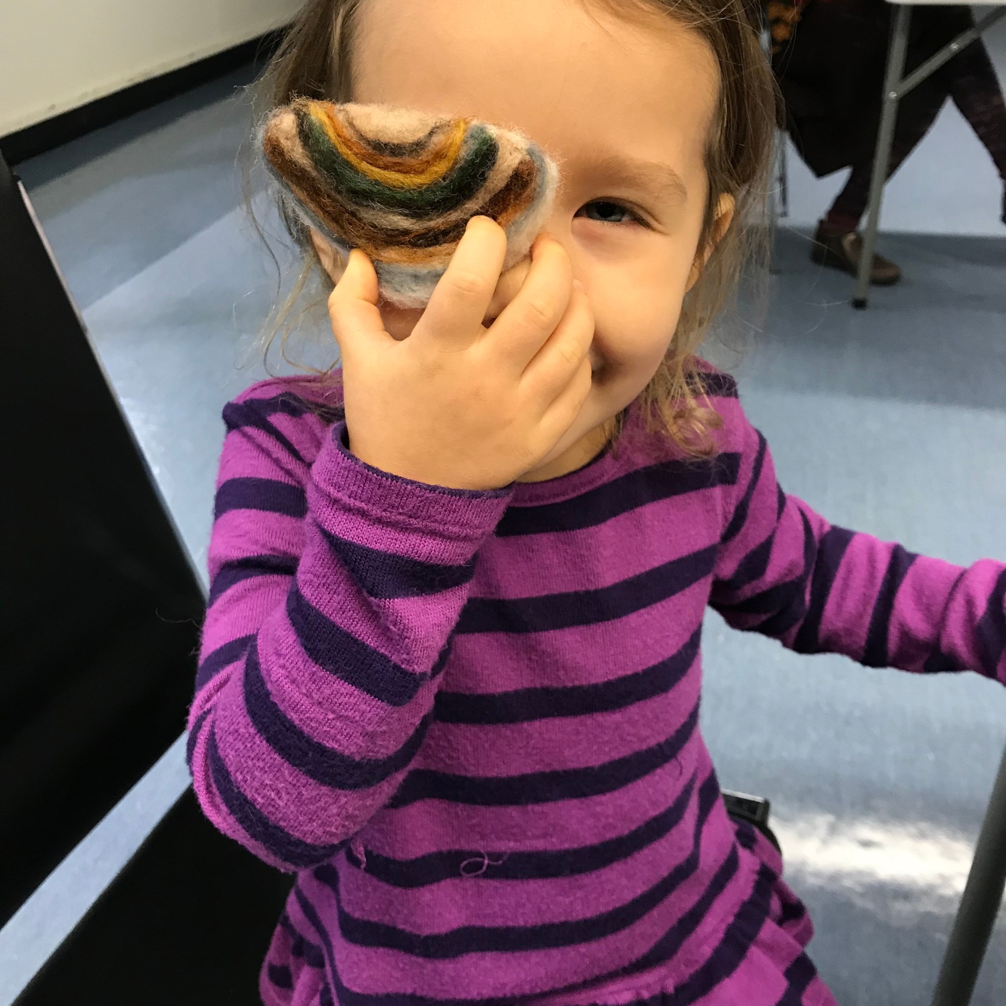 Kitsilano Community Centre’s Youth Summer Camp kids got to experience our project, with an tour of the centre’s fungal inhabitants. We dug around in a pile of woodchips, touching, smelling and looking up close with 30x magnifying lenses at mycelium. We did a rundown of the mushrooms featured on the Felted Fungi Map we made last fall, and we went out to see who was around in the dry weather. The iconic Fly Agaric (Amanita muscaria) and most of the others were hiding underground, but the tenacious Turkey Tail (Trametes versicolor), Hairy Curtain Crust (Stereum Hirsutum), and Armillaria rhizomorphs were enduring.
