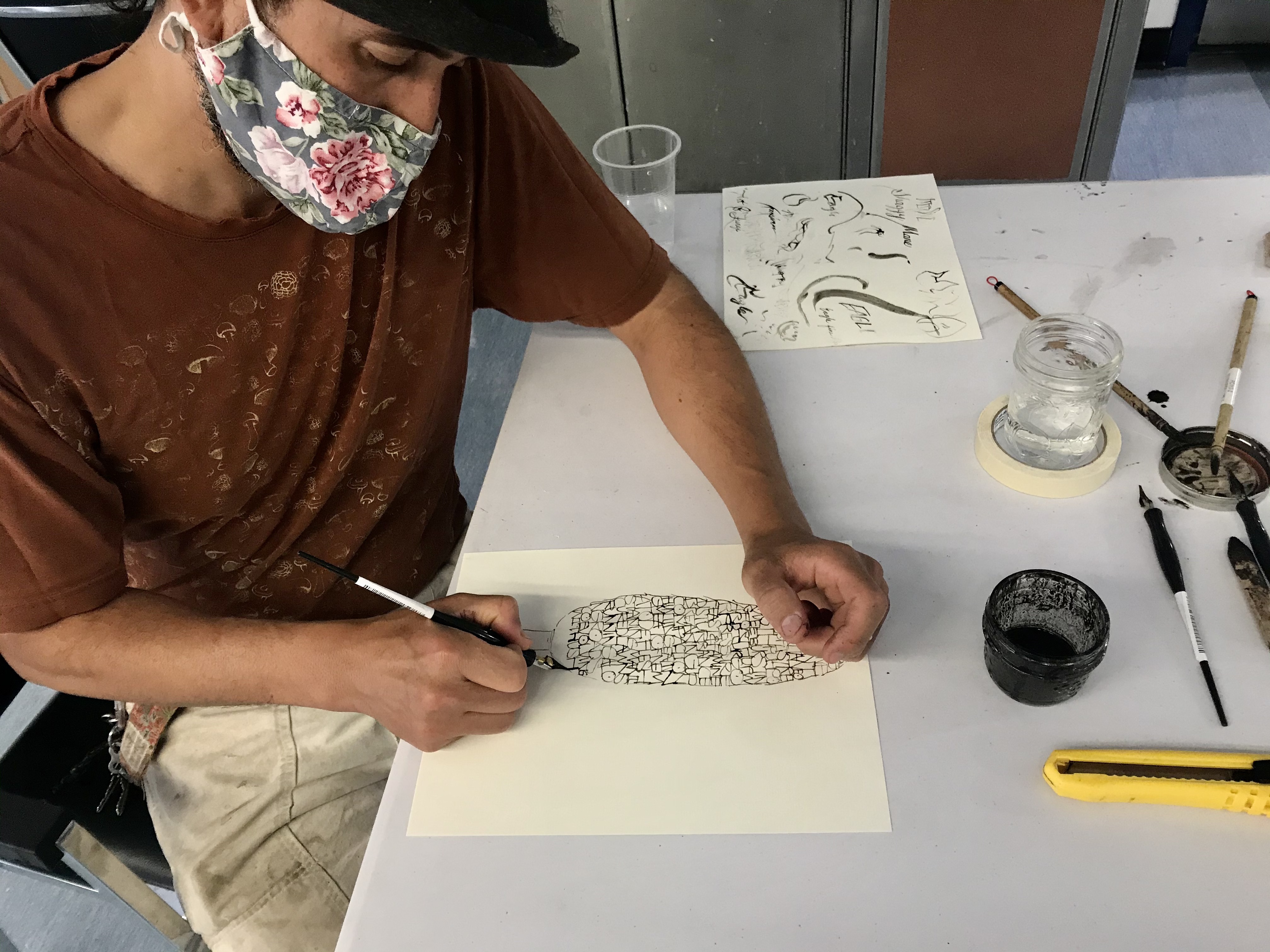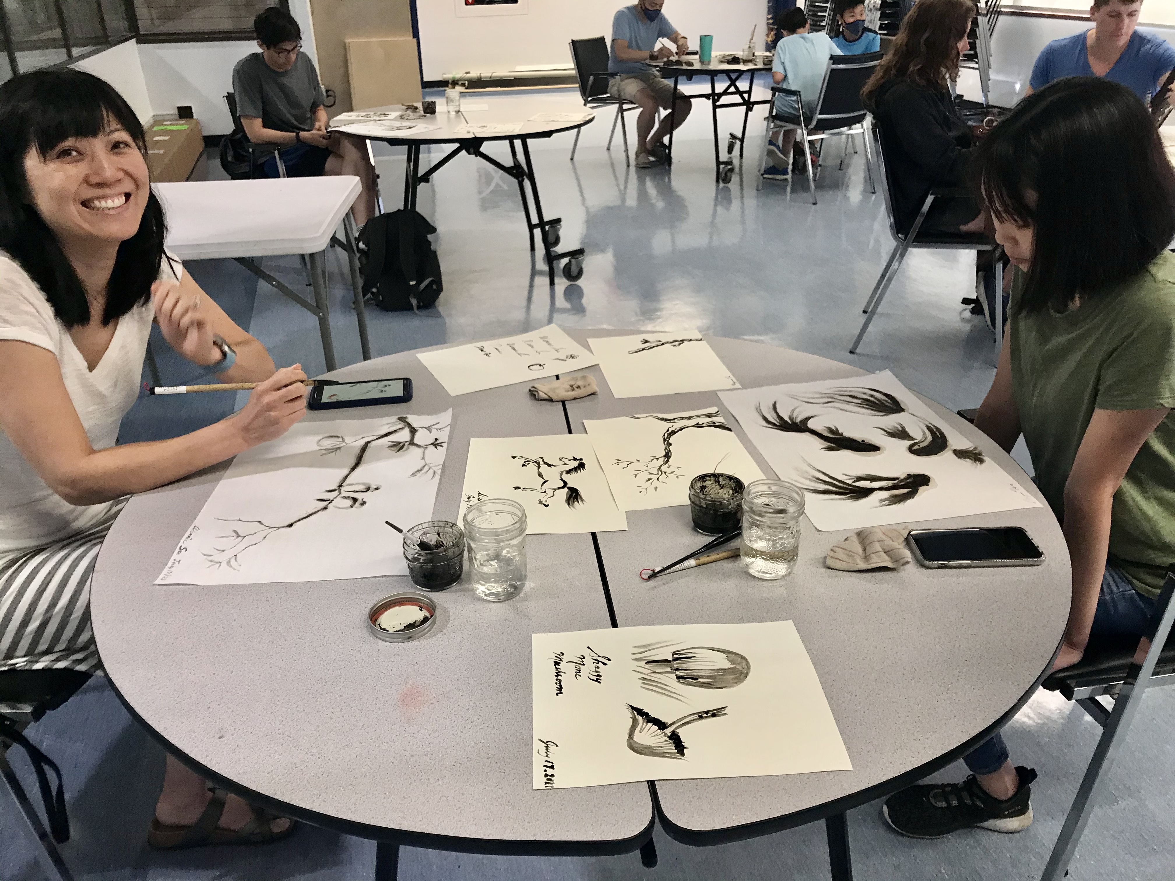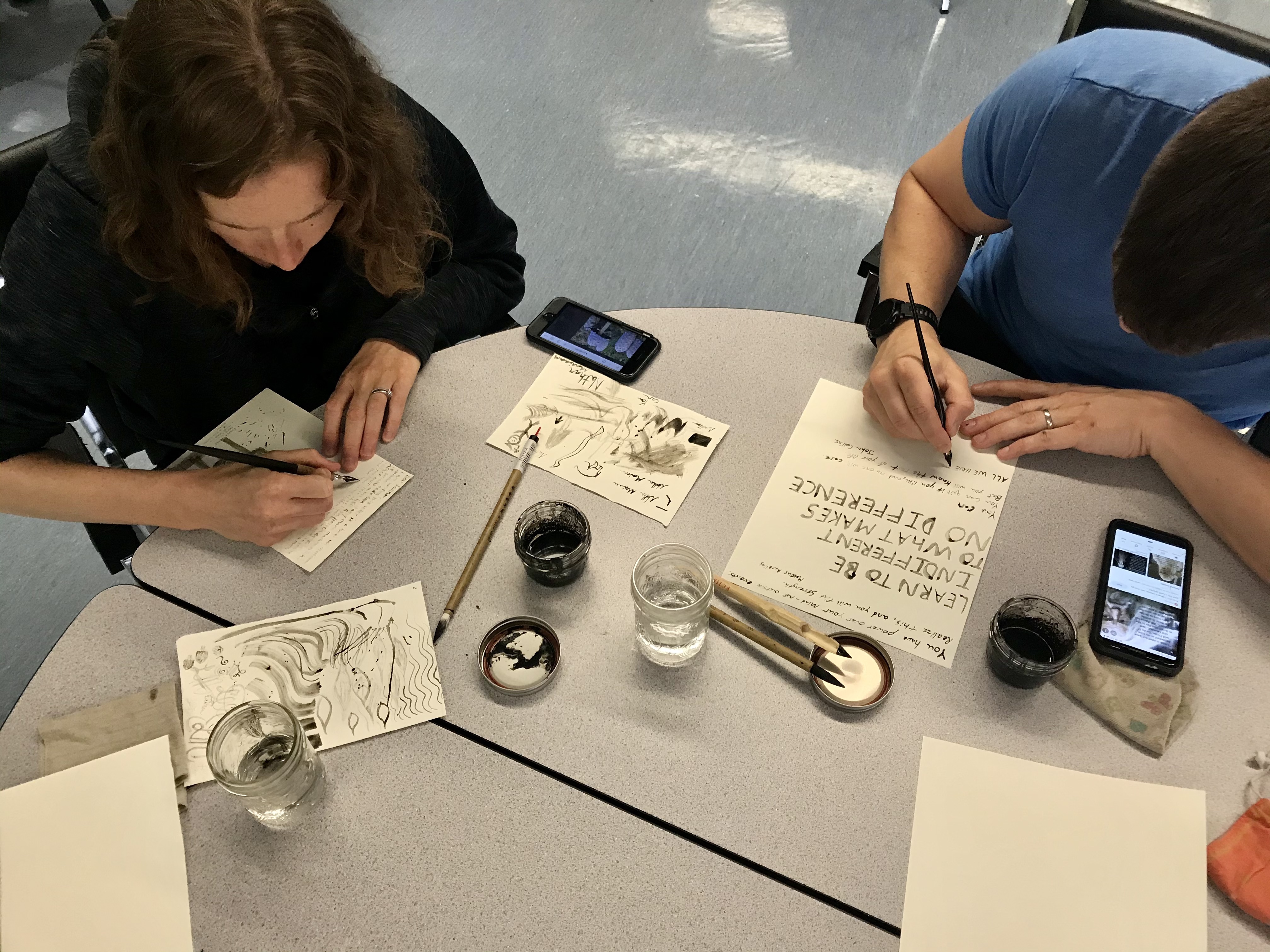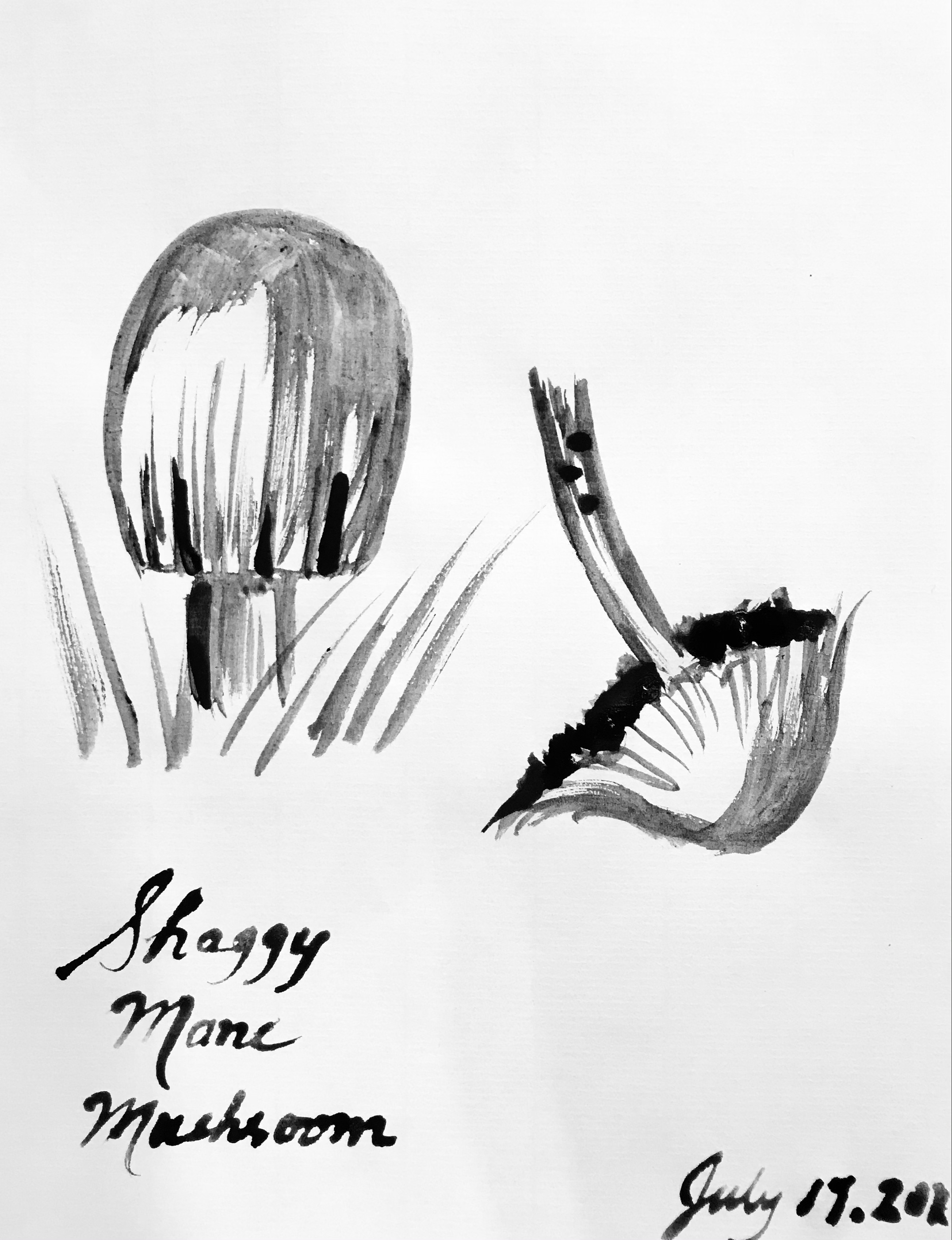 We had a lovely day today, surrounded by community members of all ages. We explained the process of making ink from Shaggy Mane mushrooms, shared some of the local ink we made with the participants and used calligraphy brushes and pens to draw mushrooms, letters, and other marks.