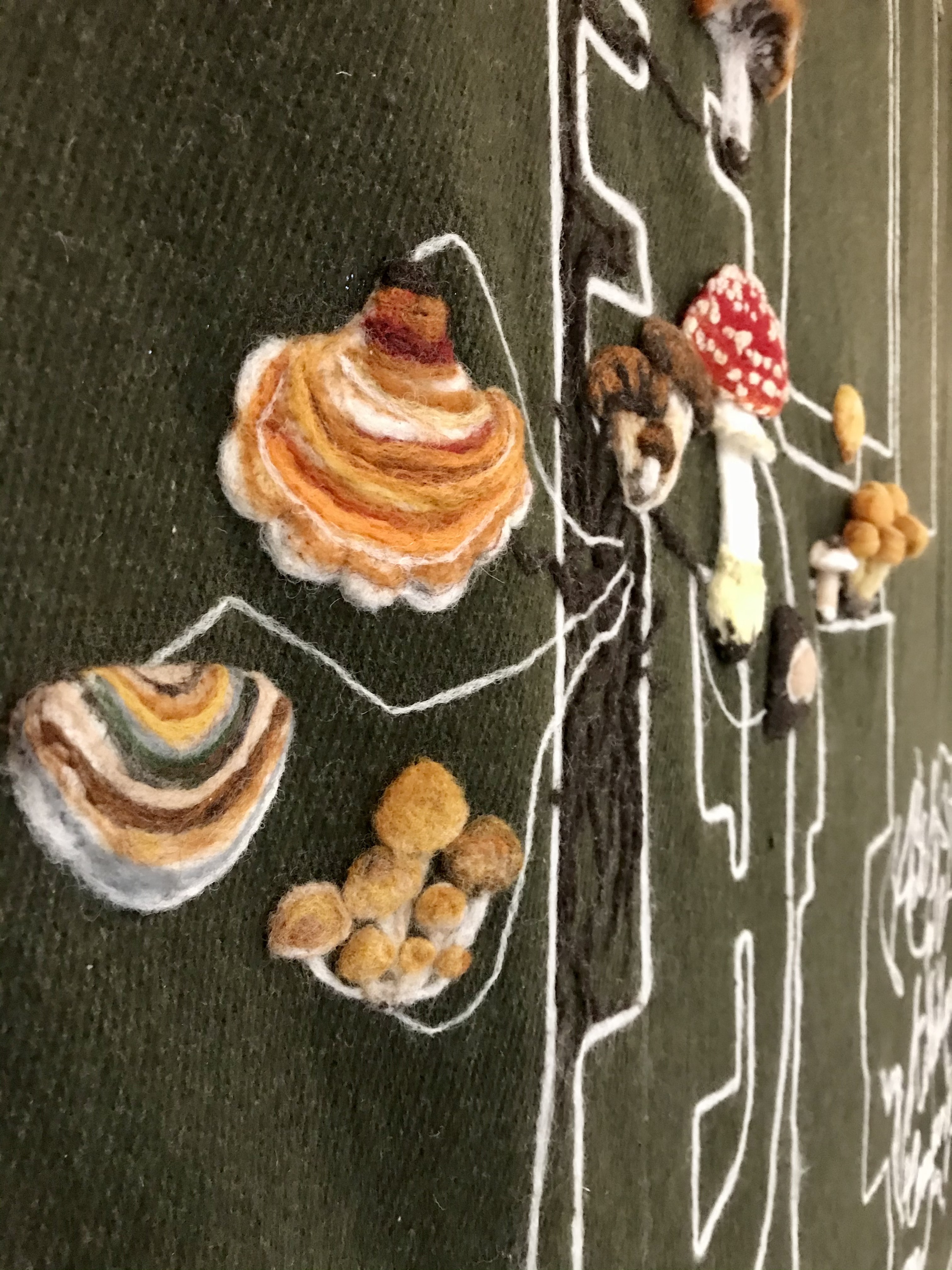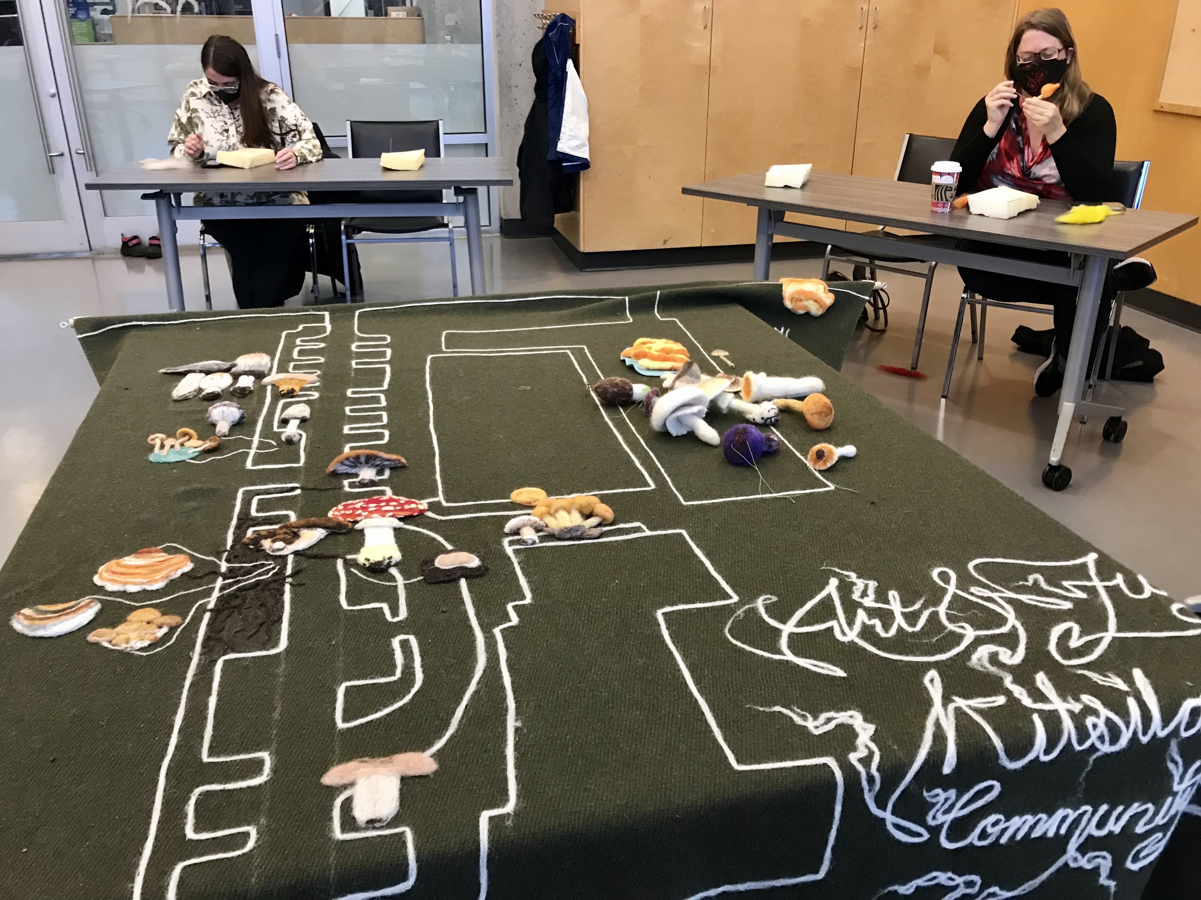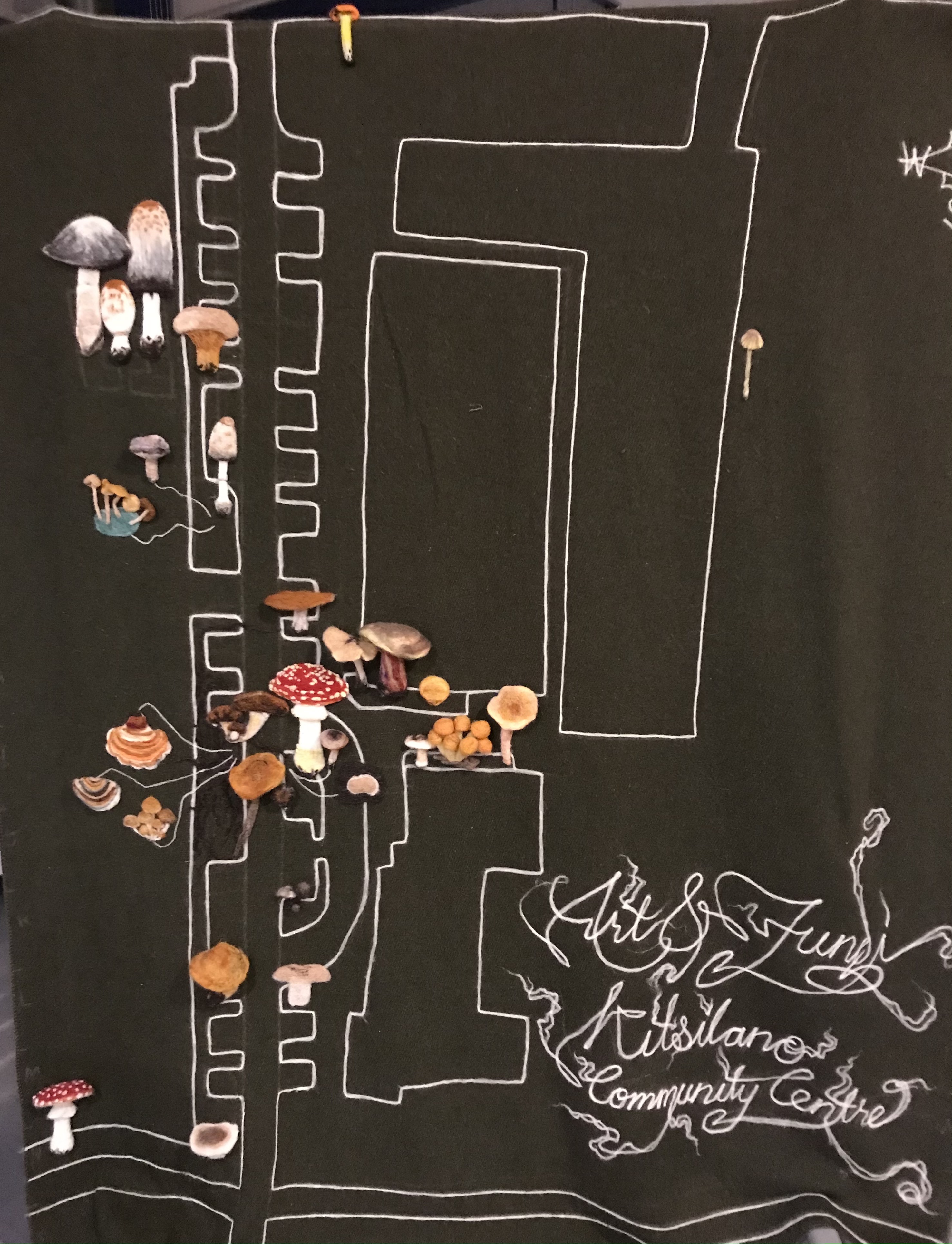 We are grateful to have been invited to share the Felted Fungal Map we created in collaboration with local community members at the Kitsilano Community Centre as part of the Together and Apart Exhibition at the Roundhouse Community Center. Alongside the exhibition, we taught a mushroom needle felting workshop to an enthusiastic group of mycophiles.