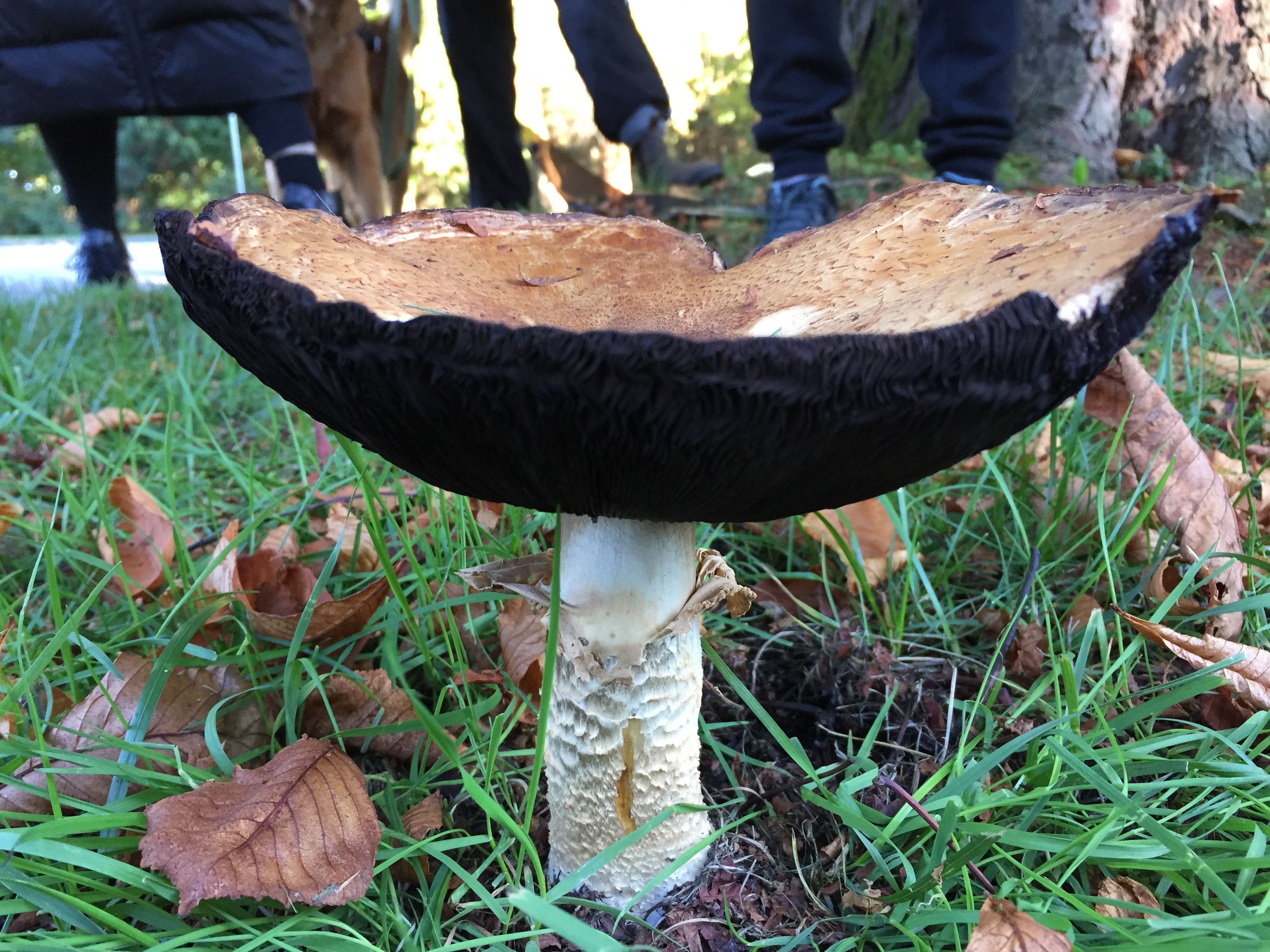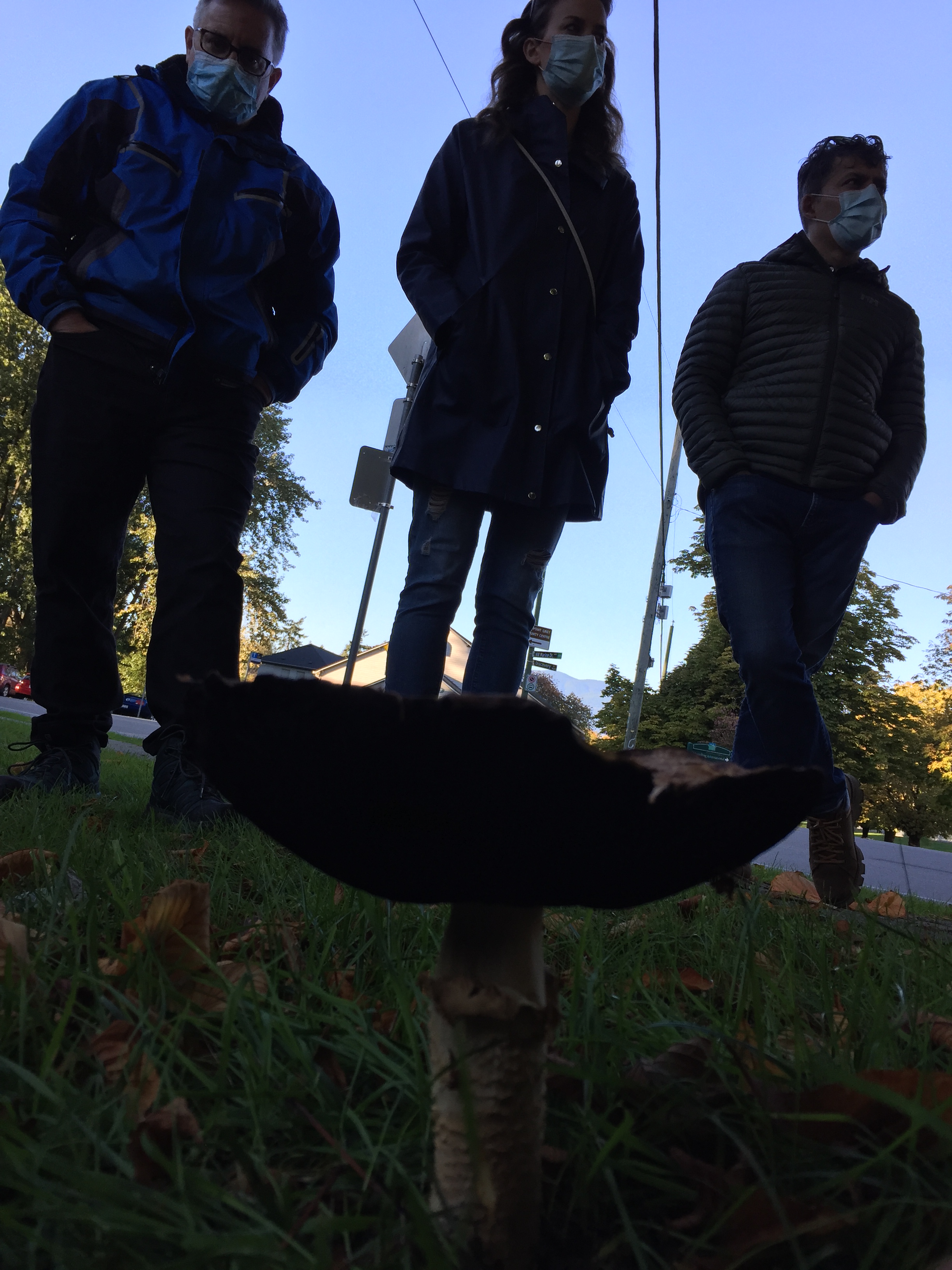 We enjoyed this beautiful, sunny fall day at Iyal’mexw/Jericho West Park and made the acquaintance of a number of mushrooms, notably many species of Agaricus and Lepitota (in the broad sense), which ranged from the choice edibles The Prince (Agaricus augustus, pictured left and centre) and Olive Shaggy Parasol (Chlorophyllum olivieri), to the Deadly Parasol (Lepiota subincarnata, right). The toxic Inky Agaricus (Agaricus moelleri) made a bold, surprise appearance at the end of our walk. The aromas of the Earthballs (Scleroderma sp.) tantalized our noses with notes of rubber, tar and earth.