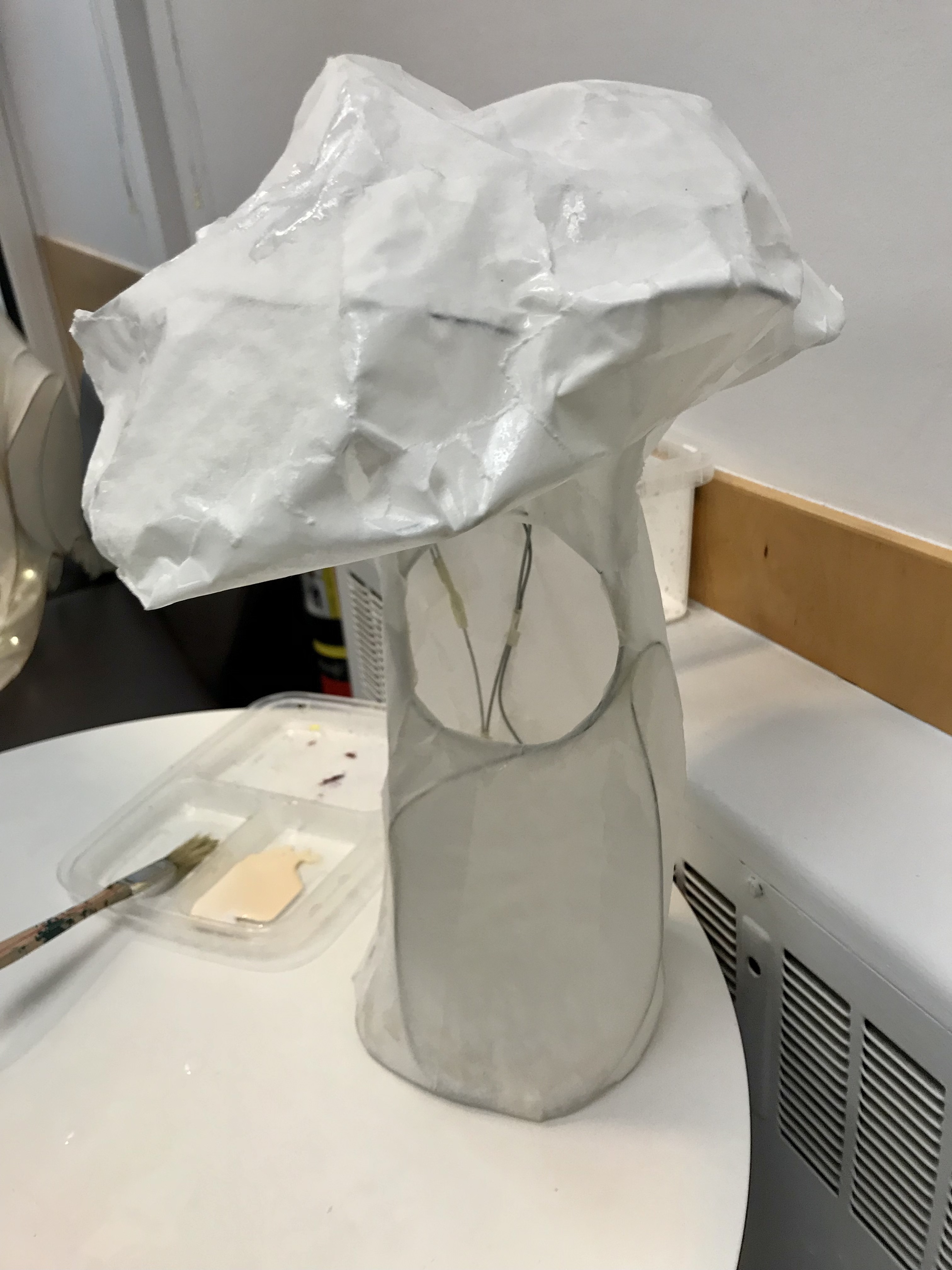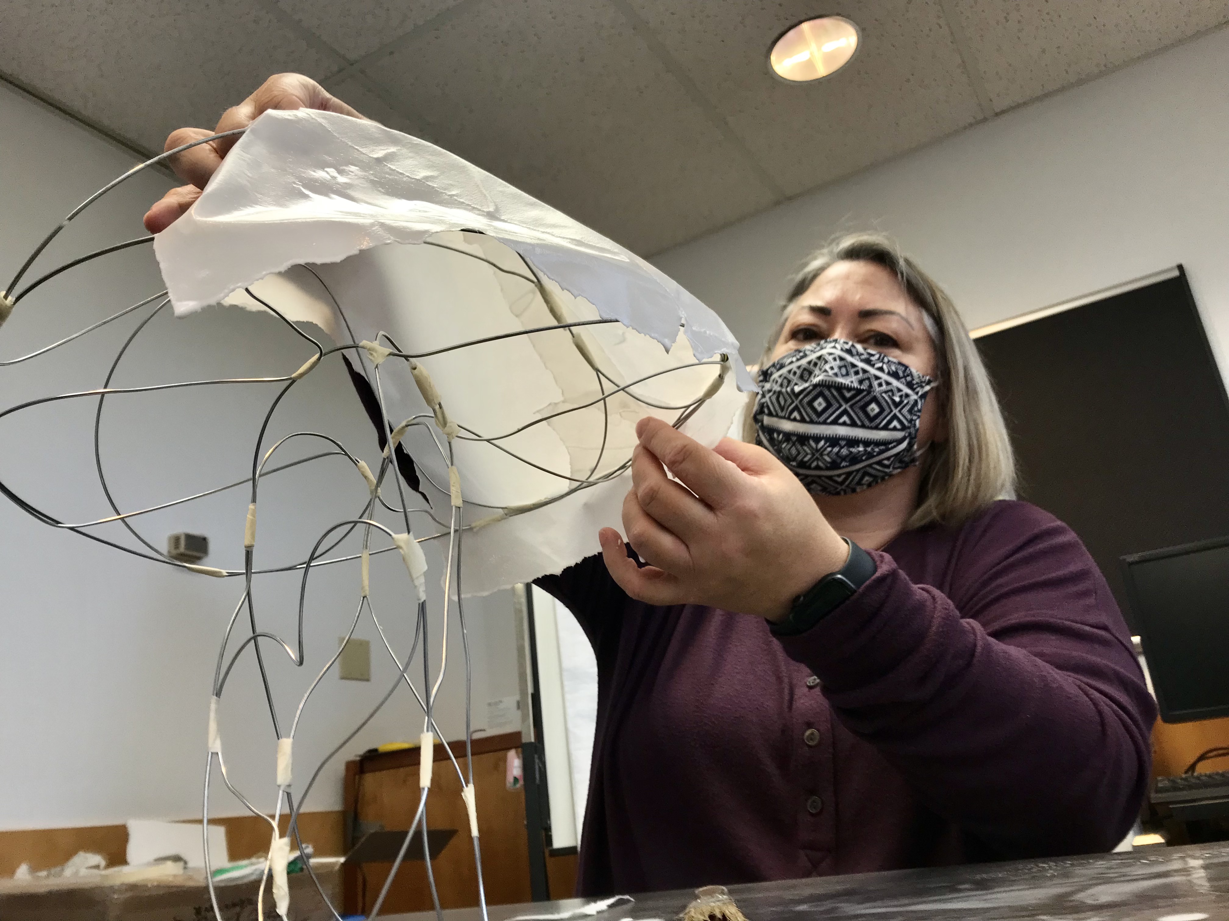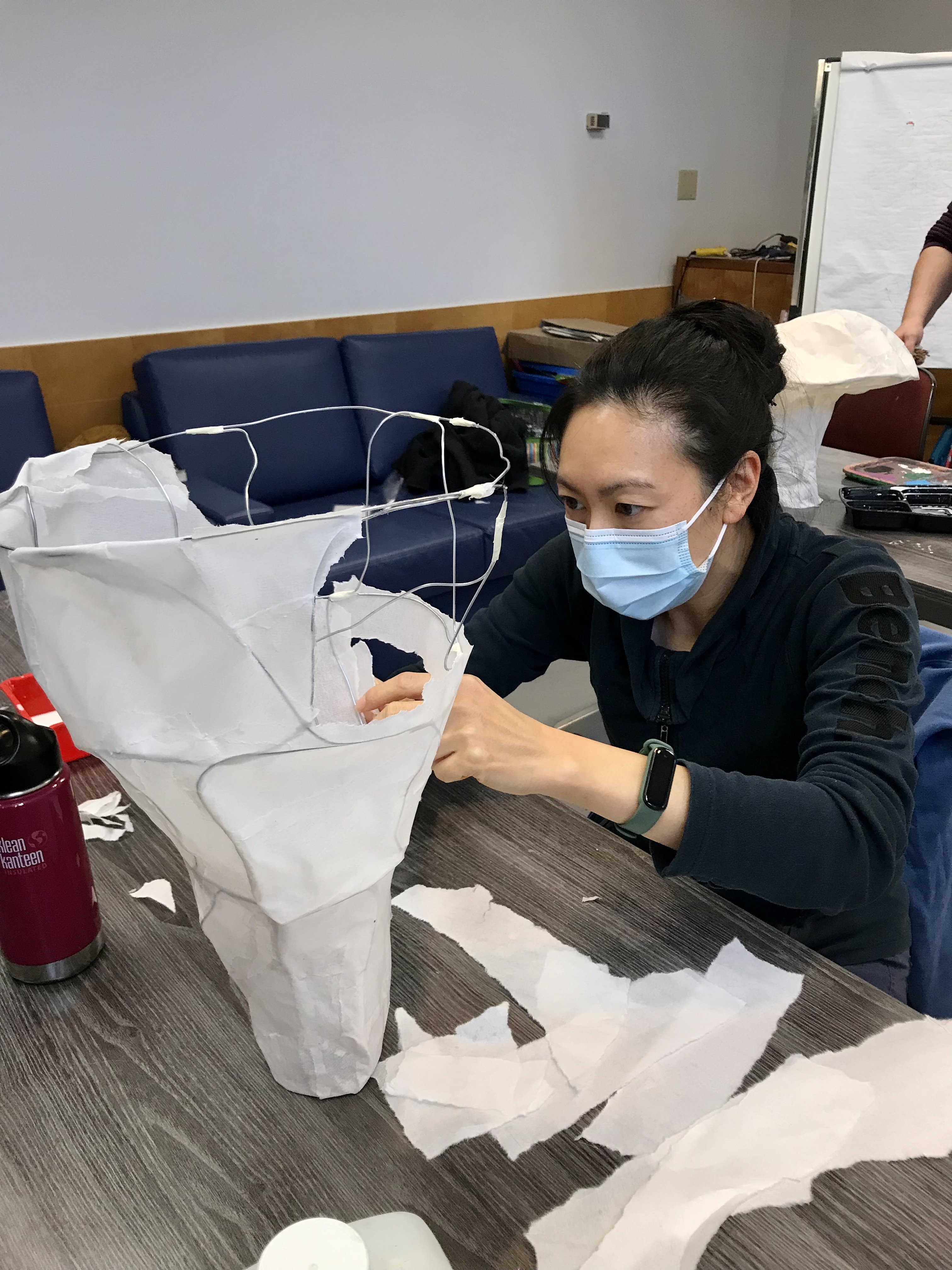 Today, we worked diligently at creating beautiful mushroom lanterns, each of us building a wire armature and covering it with delicate rice paper. Chanterelles, Amanitas, jellies, Russulas and Boletes were some of the many inspirations. After five hours of focused work, participants are looking forward to lighting and displaying their lanterns during our lantern parade and celebration next week.