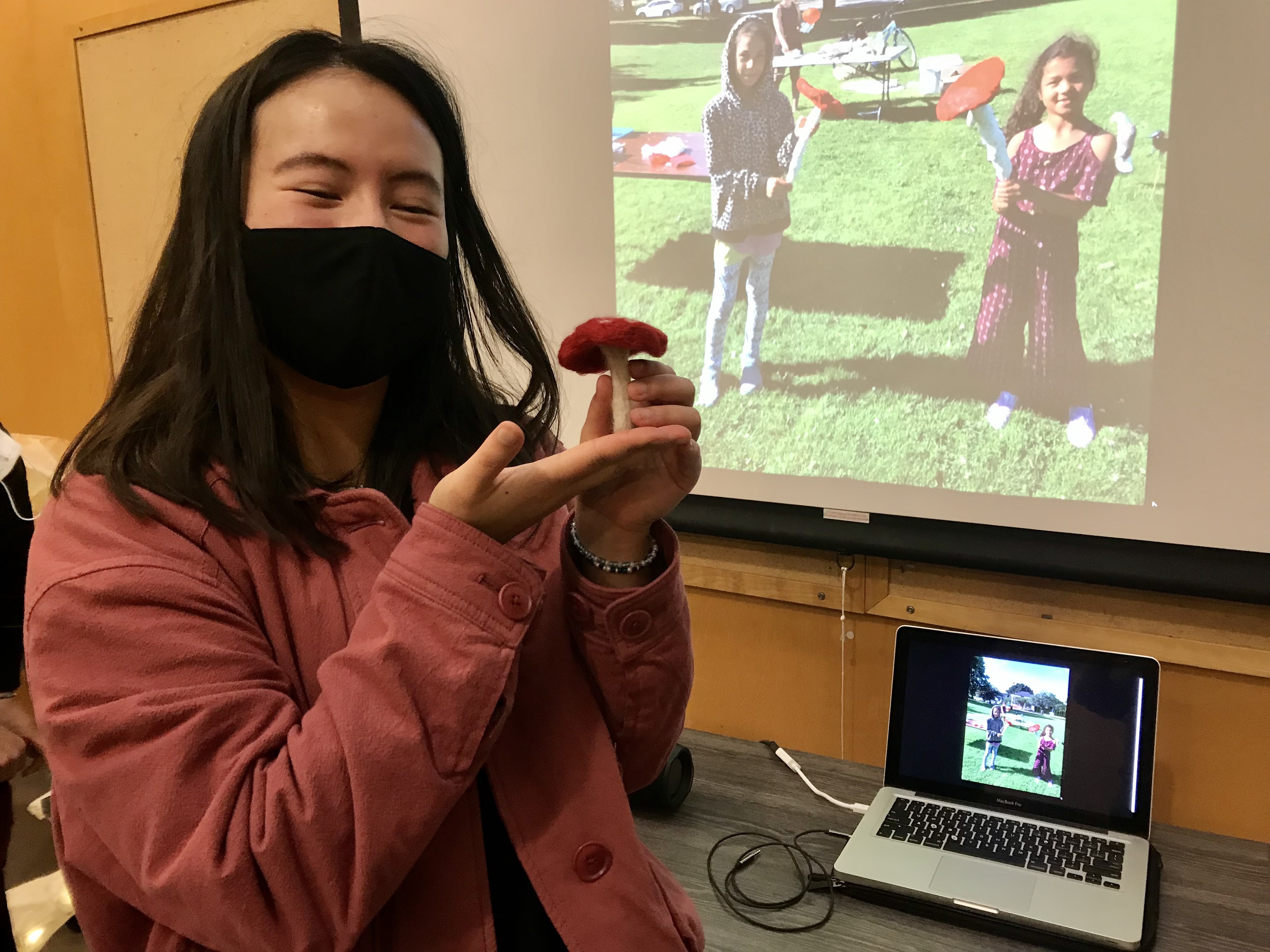 We had a sweet time today, felting mushrooms of the neighbourhood with eleven participants, each in the confort of their homes. Each of them was assigned one of the mushroom species living along the streets surrounding the Kitsilano Community Centre. We will collect their work to create a large collective felted fungal map that will be exhibited in the window of the Kitsilano Community Centre in the next few weeks.