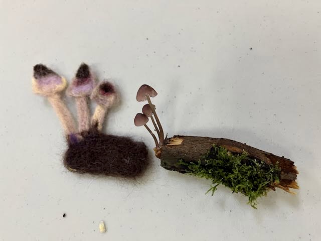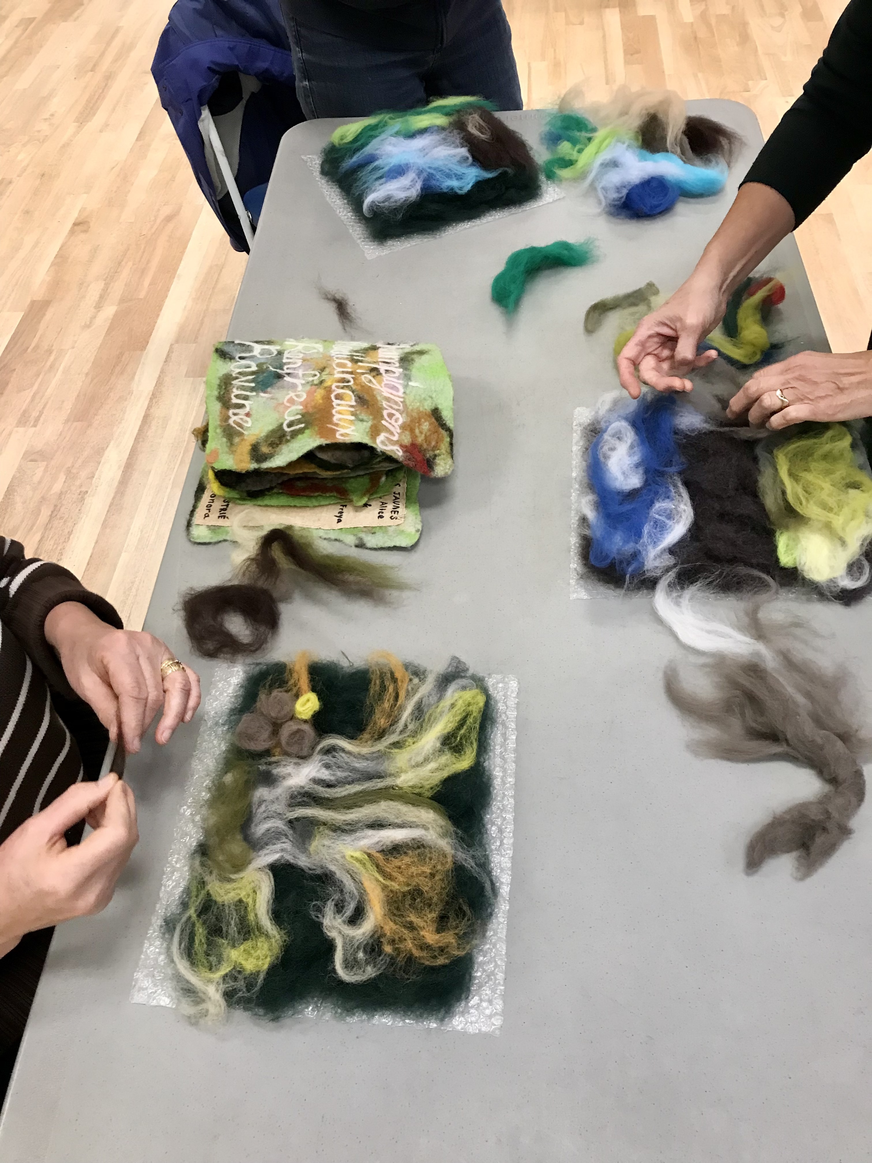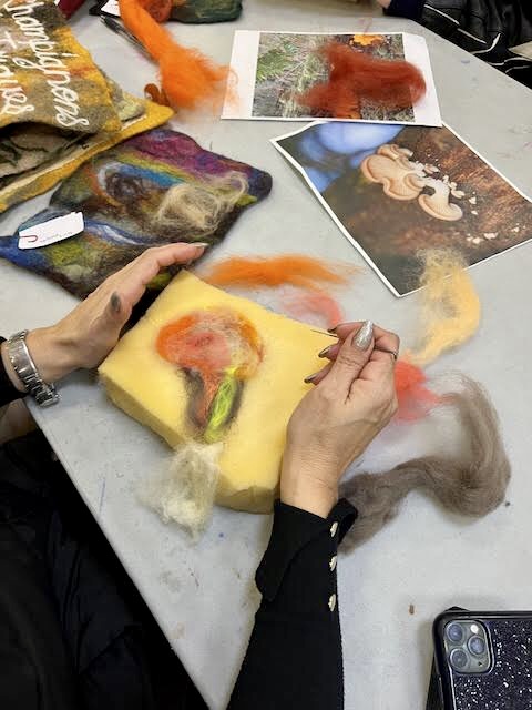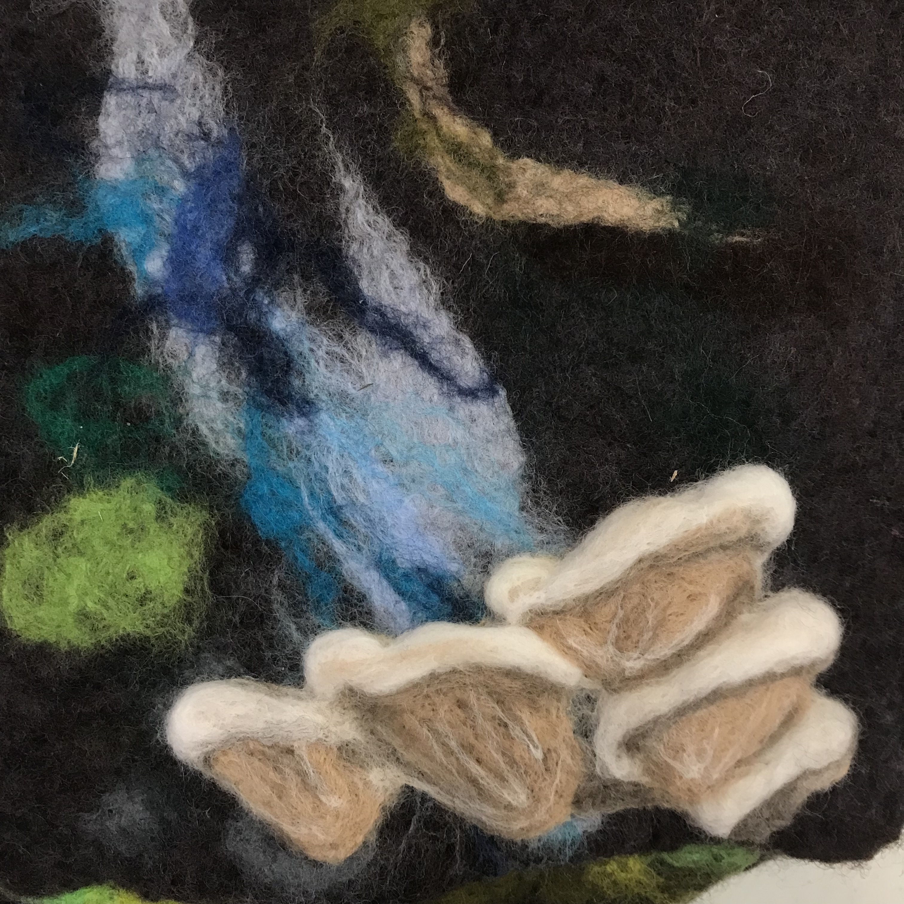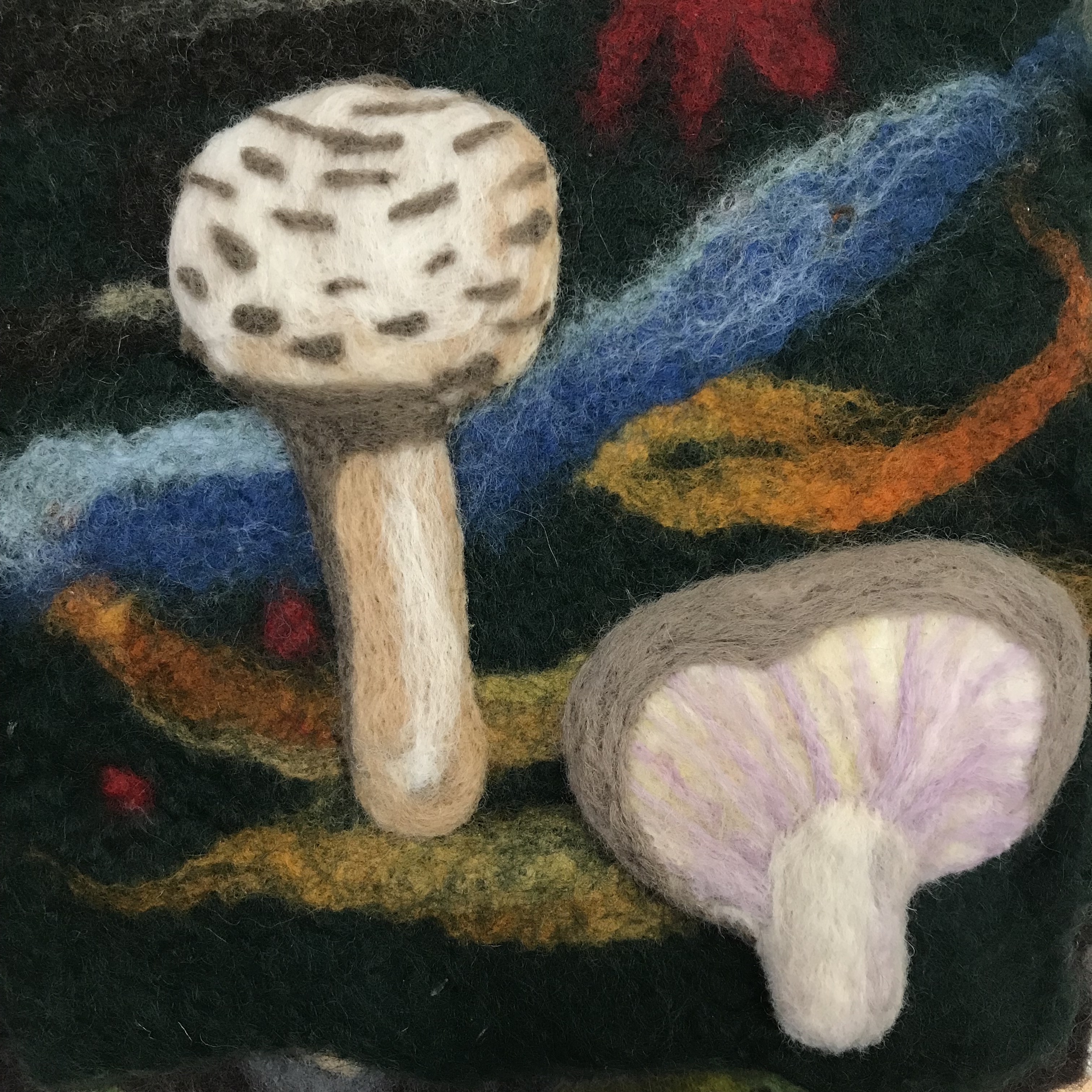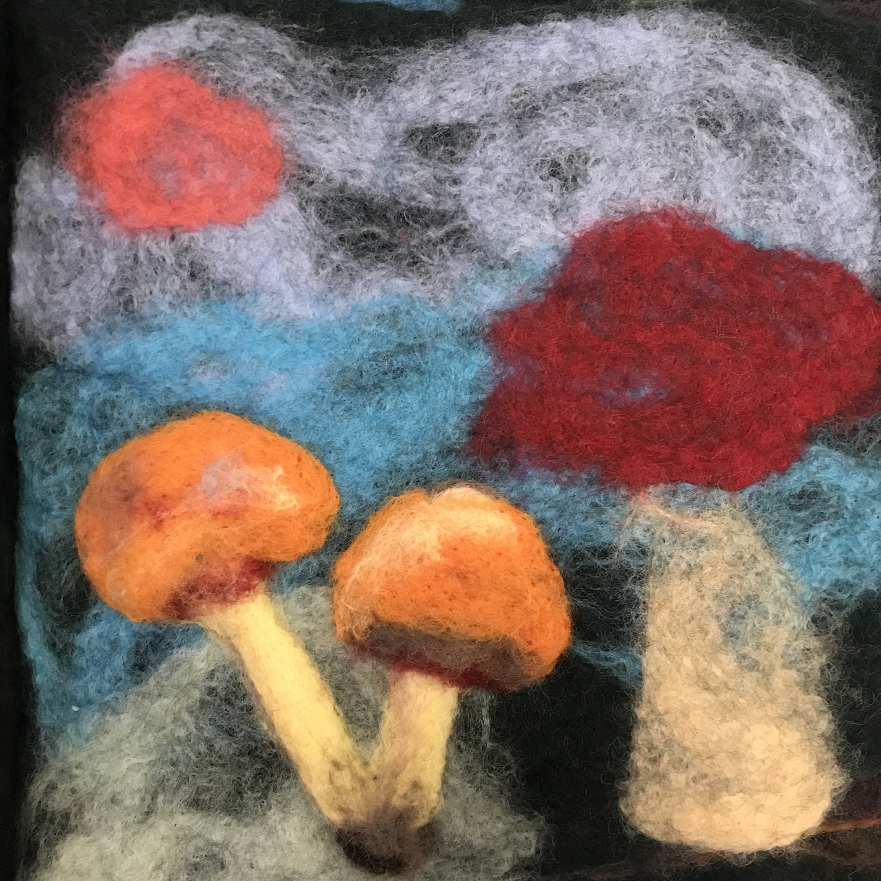 During this 4 months residency at the Ron Andrews Community Centre in North Vancouver, we focused on felting fungi that were be found in the forested woods of Windridge Park, next to the community centre, to create a series of felted books inspired by local fungi species, and using simple wet felting and needle felting methods. Each book was collectively felted by over 50 community members of all ages in collaboration with artists Isabelle Kirouac and Willoughby Arévalo. To imbue this project with experiential learning and interdisciplinary arts inspired by fungi, we will also offered mushroom walks, a movement practice and sensorial activities inspired by fungi.