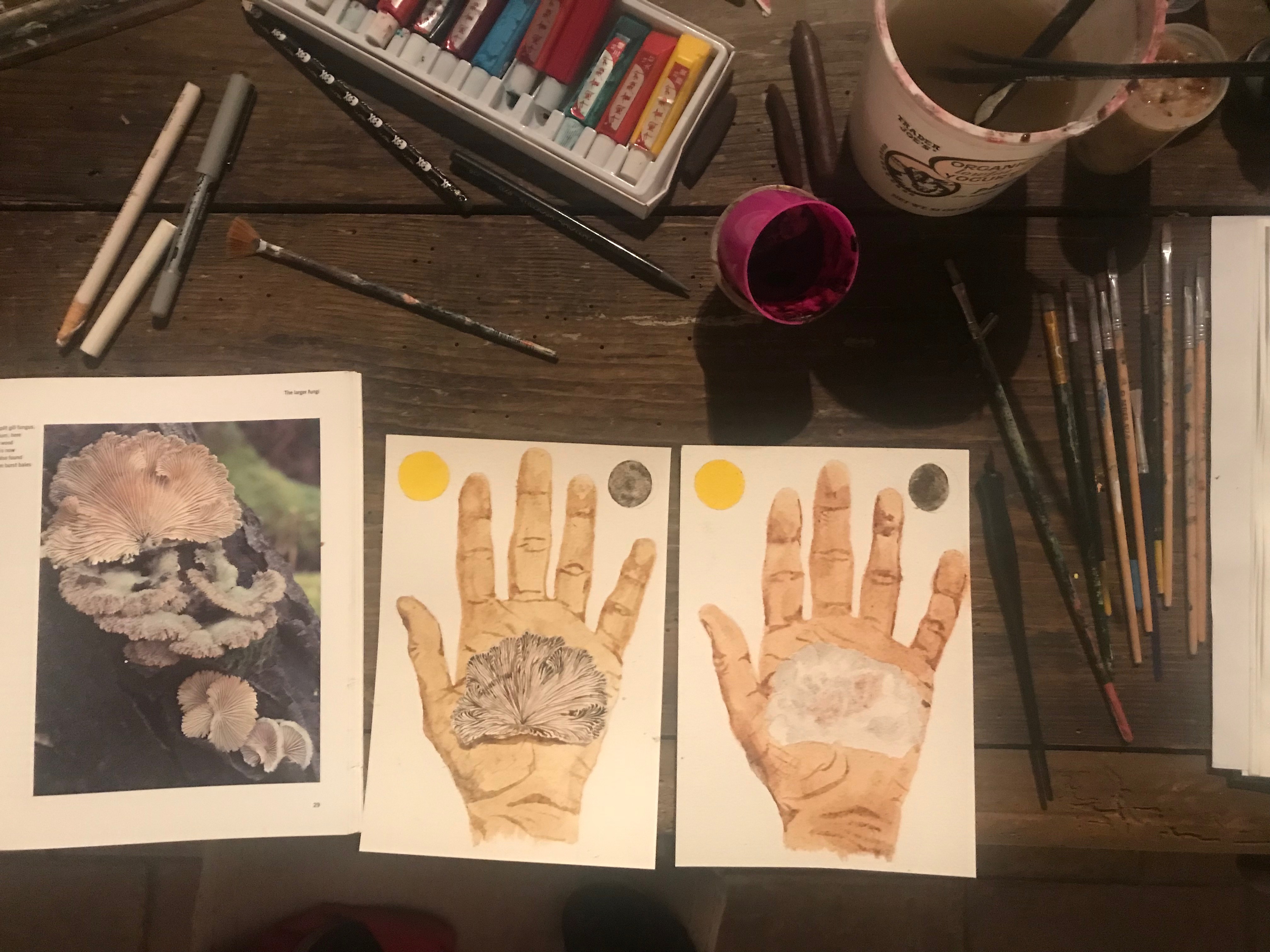 During their month-long residency, they researched the intersection between art and fungi, resulting in three new works presented in the context of the Collective Exhibiton, including the first iteration of Aromatic Fungal Wheel, Mycelial Body Maps, and Mushroom Scores for Fake Naturalists.