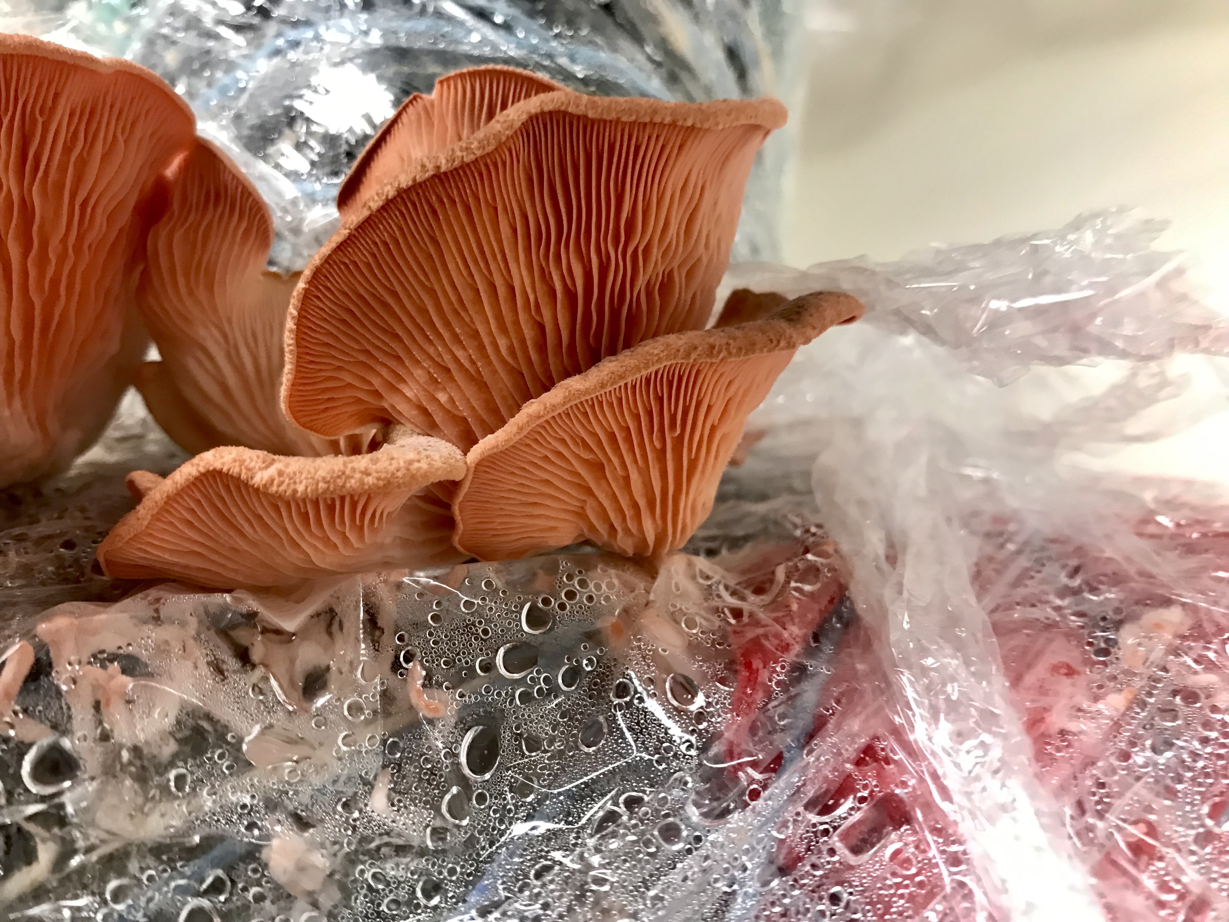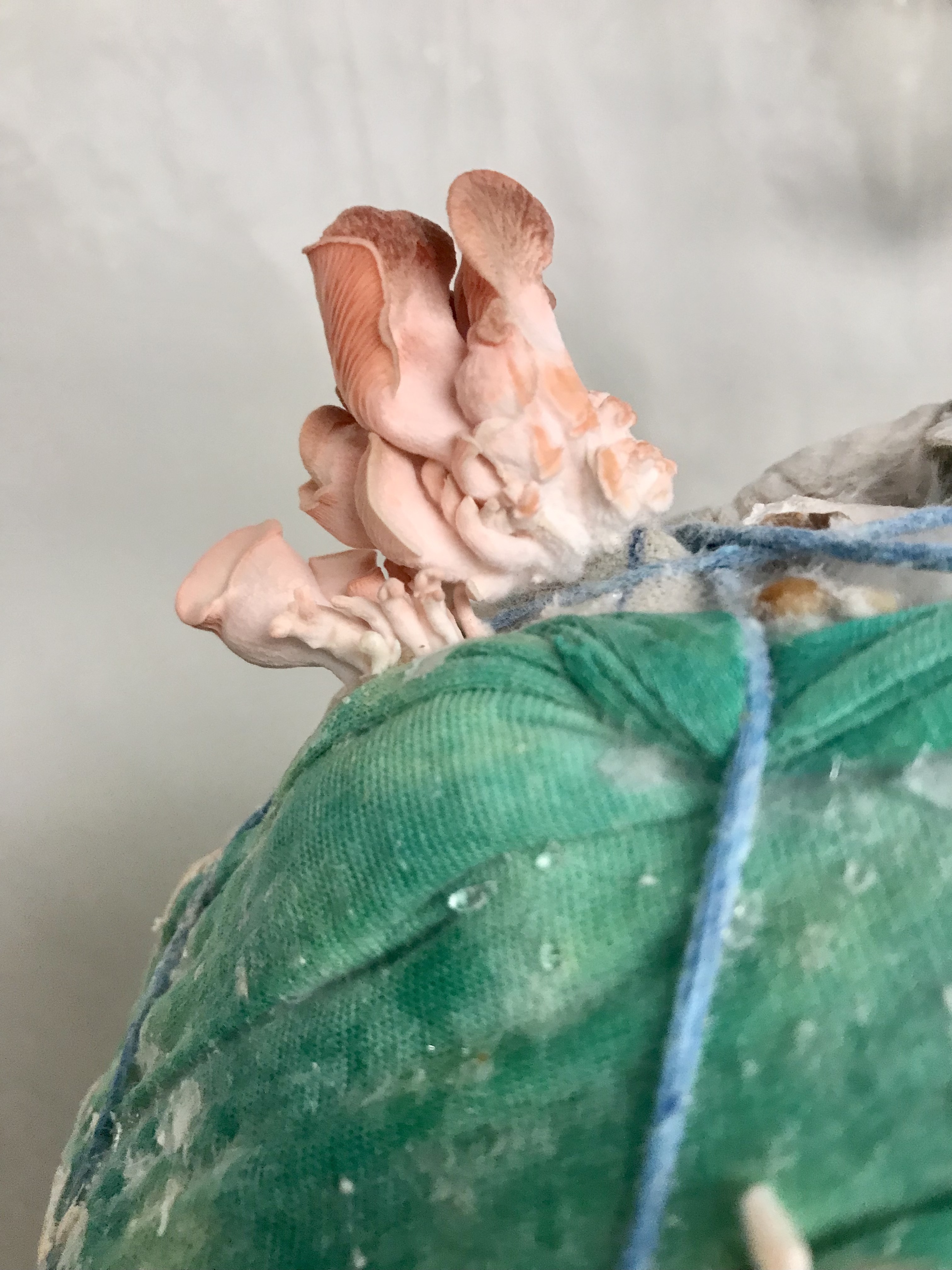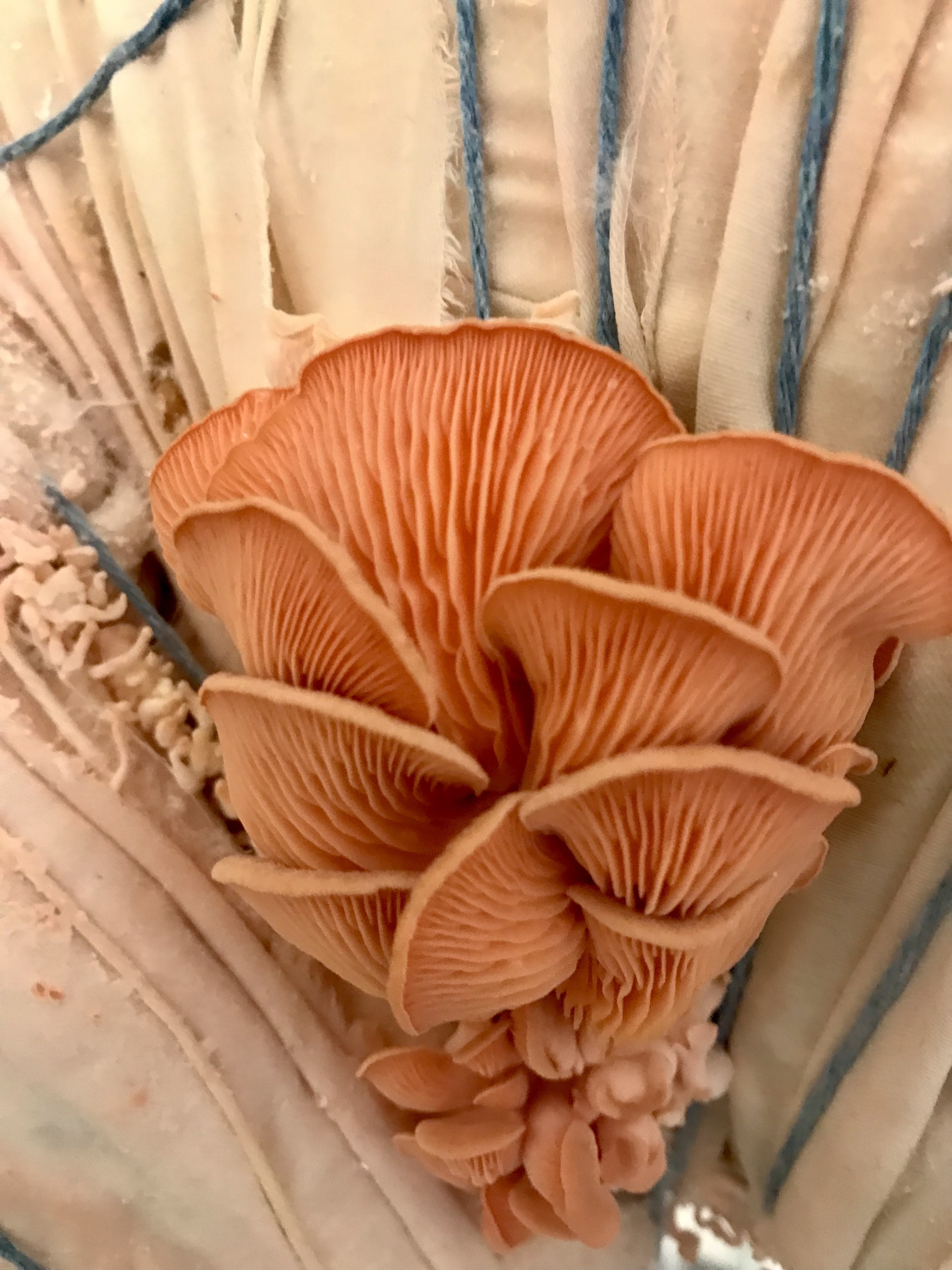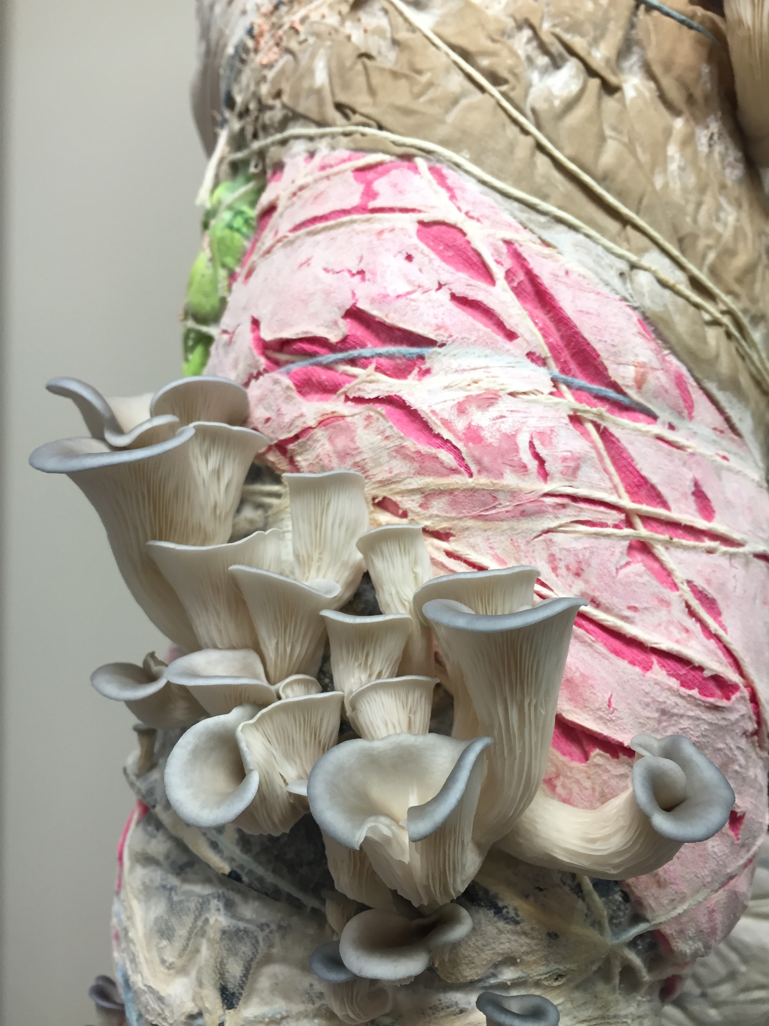 This living mycelial sculpture of a human figure was made of a wooden armature covered with recycled cotton clothing, wrapped and inoculated with blue and pink oyster mushroom mycelium. Over a couple of weeks, oyster mushrooms slowly ate and fruited out of it. Oyster mushrooms can digest toxic dyes and contribute to remediation. The sculpture, which is now decomposing and returning to the soil, has been exhibited at Mountainside/SmanitaXan Secondary School and Maplewood House in North Vancouver. It was also featured as part of Flashlight Mysteries at Deas Island Regional Park. This project was funded by North Van Arts and ArtStarts.